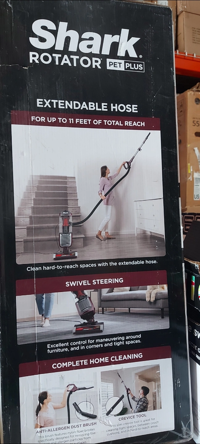 Shark Rotator ZU75 Anti-Allergen Pet Plus Corded Upright Vacuum with Self-Cleaning Brushroll Extended Reach Extendable hose for up to 11 feet of total reach for vacuuming above the floor and in tight spaces. Lightweight Versatility in every mode and whole-home cleaning capacity. Swivel Steering Easily maneuver your vacuum in and out of tight spaces, in corners, around furniture, and more. Large Dustcup A large-capacity, easy-to-empty dustcup allows for extended cleaning without interruption. Controlled Suction Ergonomic slider on the handle lets you throttle down the suction on carpets for more maneuverability and crank it back up to clean hard floors. NEW with WARRANTY EASY FINANCING AVAILABLE