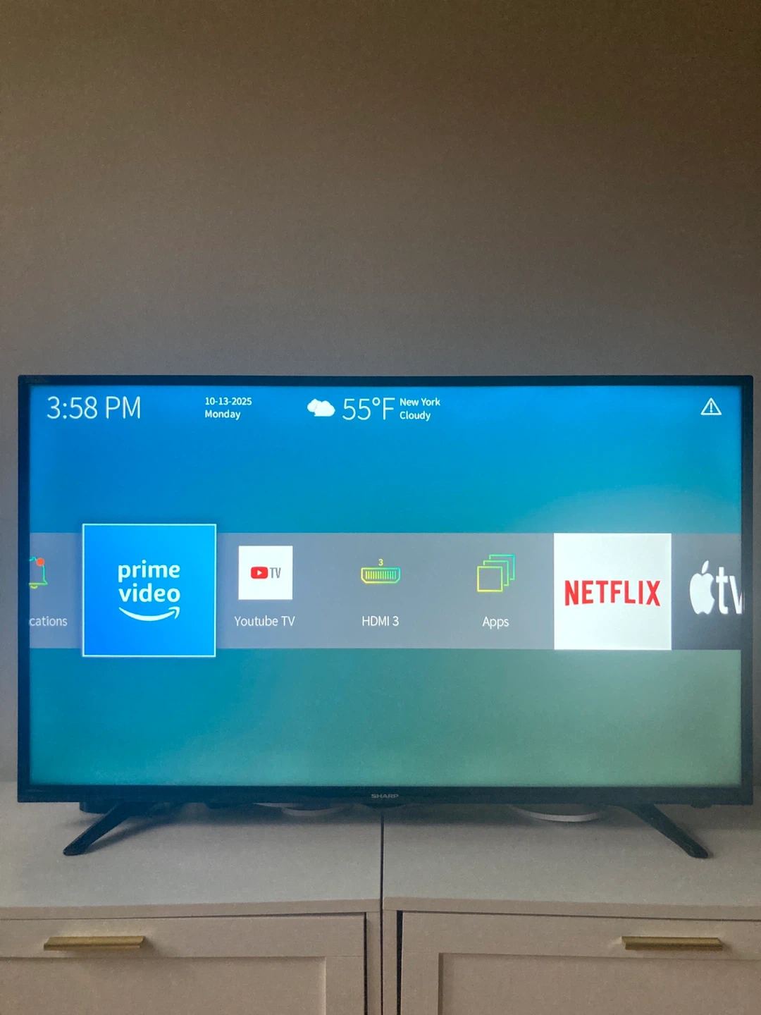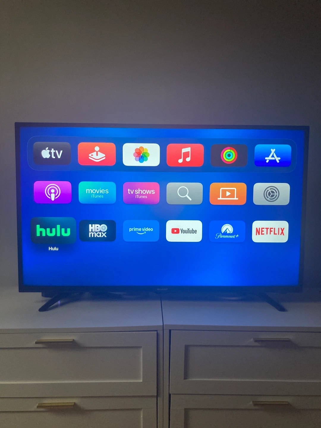Selling a 44” Sharp Smart TV in like new condition! Has some apps installed but I prefer to use it with an Apple TV plugged in. Bought for $269. The remote is included! Please let me know if you have any questions or would like to make an offer. I have so much home decor that needs to go by 10/20. I’m open to offers!