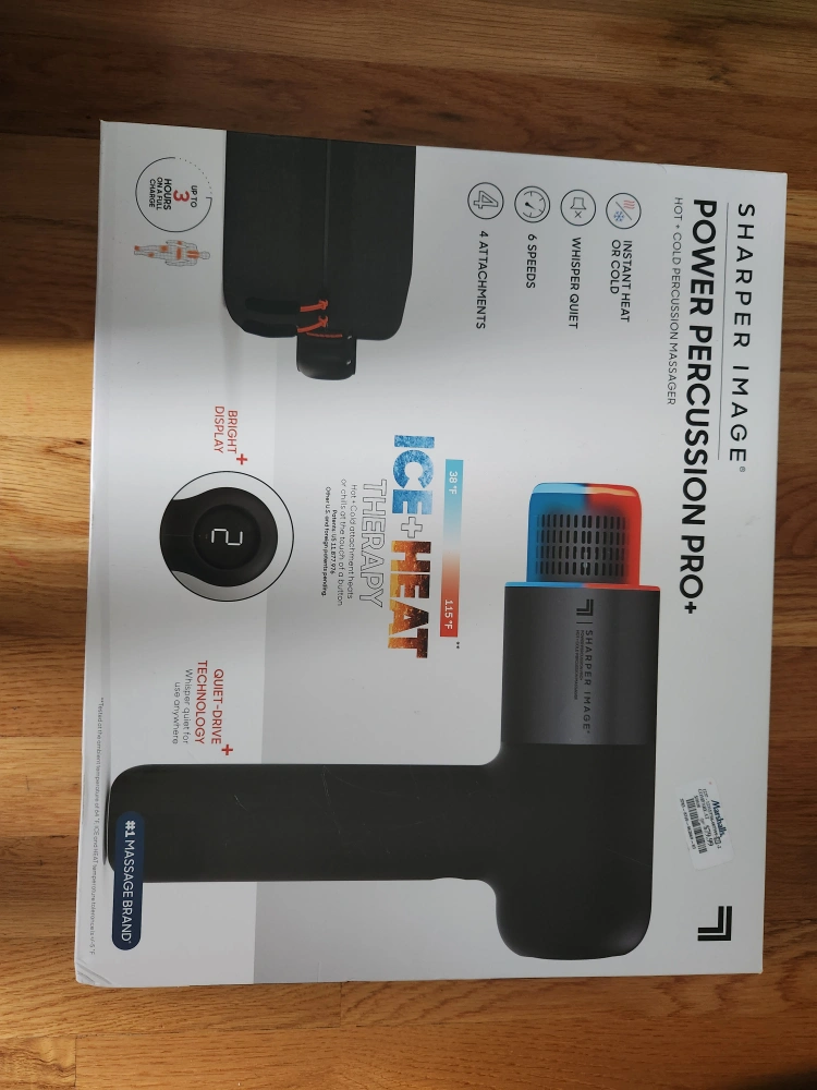 Selling a Sharper Image Power Percussion Pro+ hot and cold percussion massager! It features instant heat or cold, whisper-quiet operation, and 6 speeds. Also comes with 4 attachments and a bright display. It uses quiet-drive technology for whisper-quiet operation anywhere