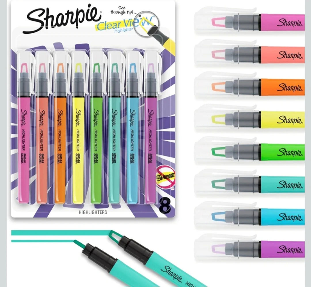 Get your hands on this 8-pack of Sharpie Clear View Highlighters! They feature a see-through tip so you can see what you're highlighting as you go. Perfect for school, work, or any project that needs a pop of color