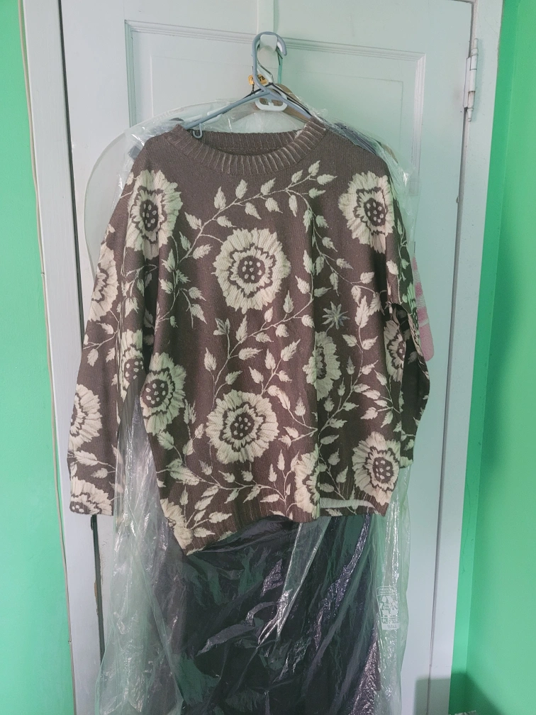 68Here's a Shein Curve sweater in size 1XL! It has a brown color with a floral design