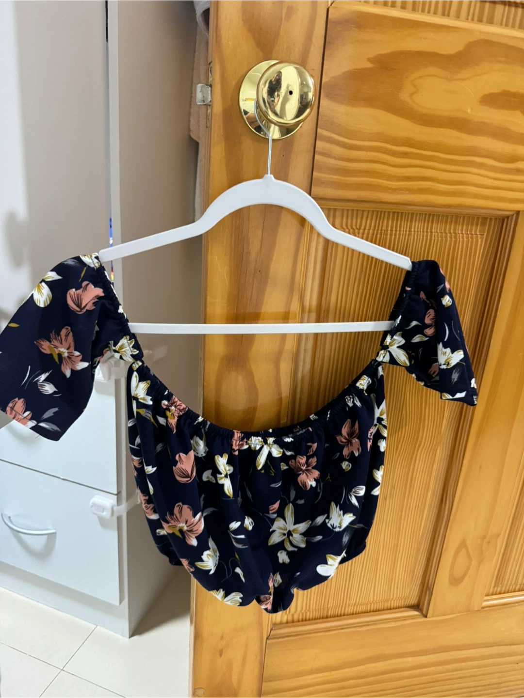 24Selling a cute Shein off-shoulder top with a floral print! It's a size small and would be a great addition to your wardrobe