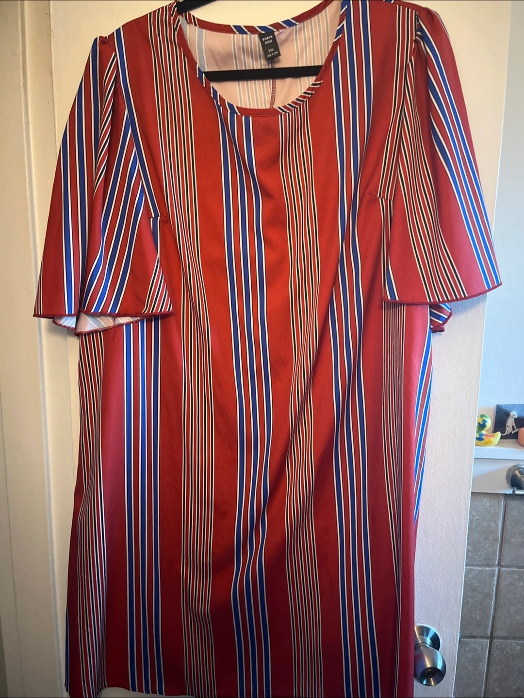 Here's a cute Shein dress with a striped pattern in red, white, and blue! It's a size 2XL and would be a fun addition to your wardrobe
