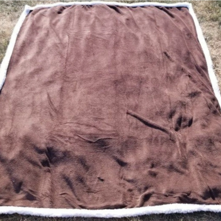 Supersoft plush sherpa throw, dark chocolate brown reverses to white, 100% polyester, new, never used