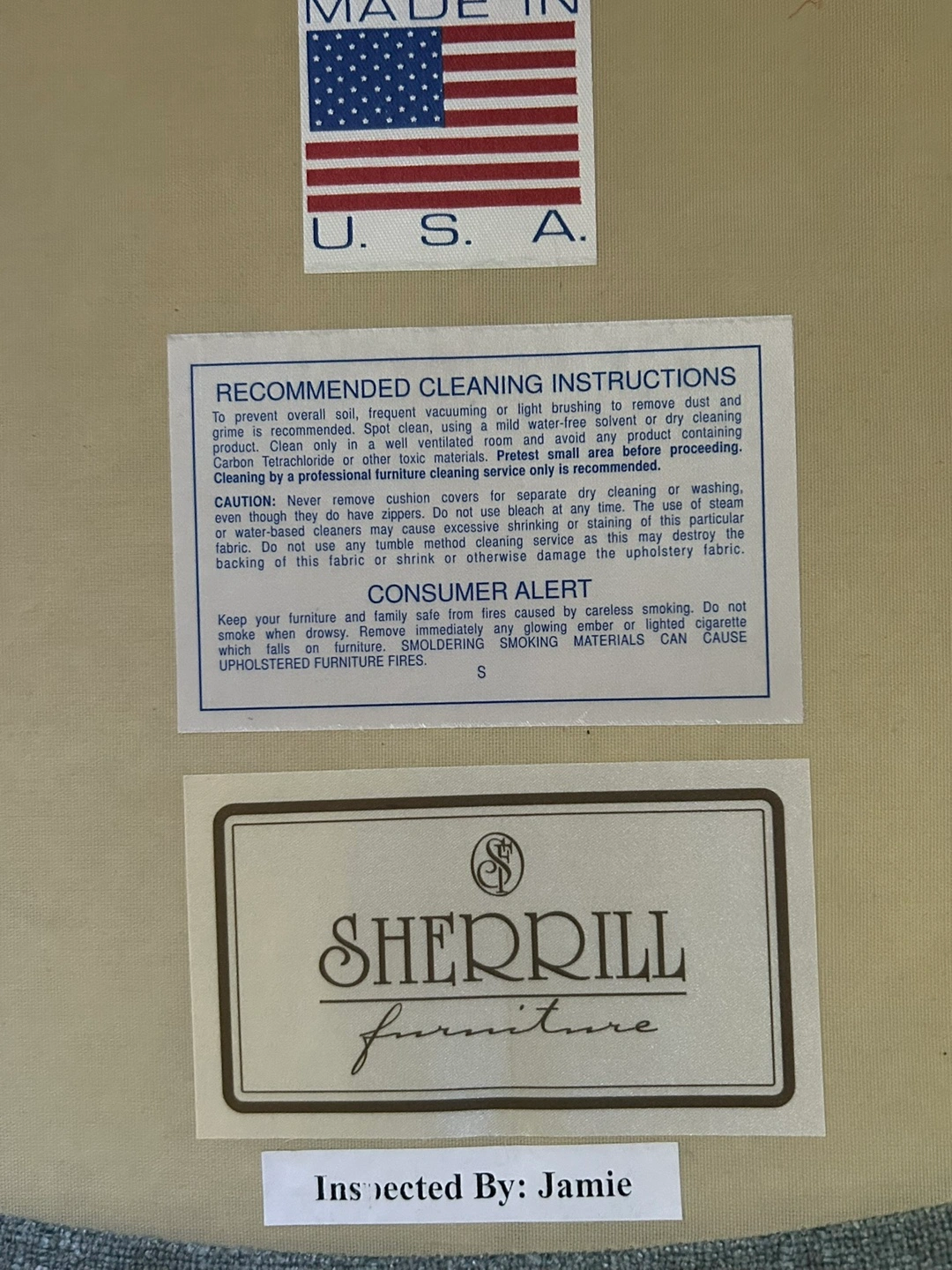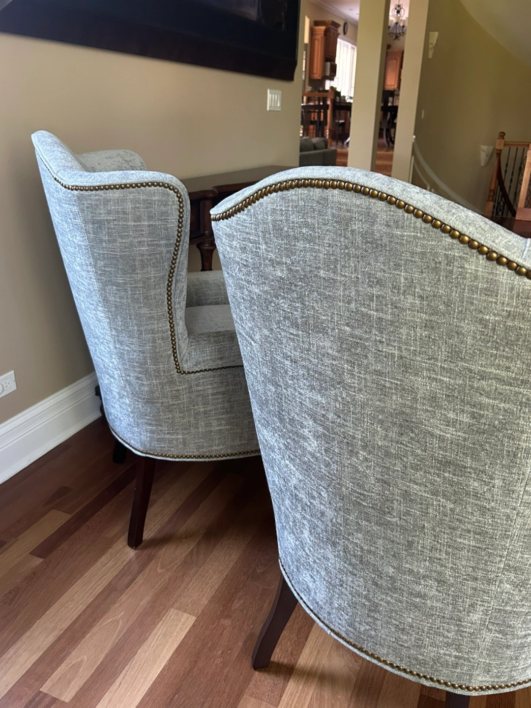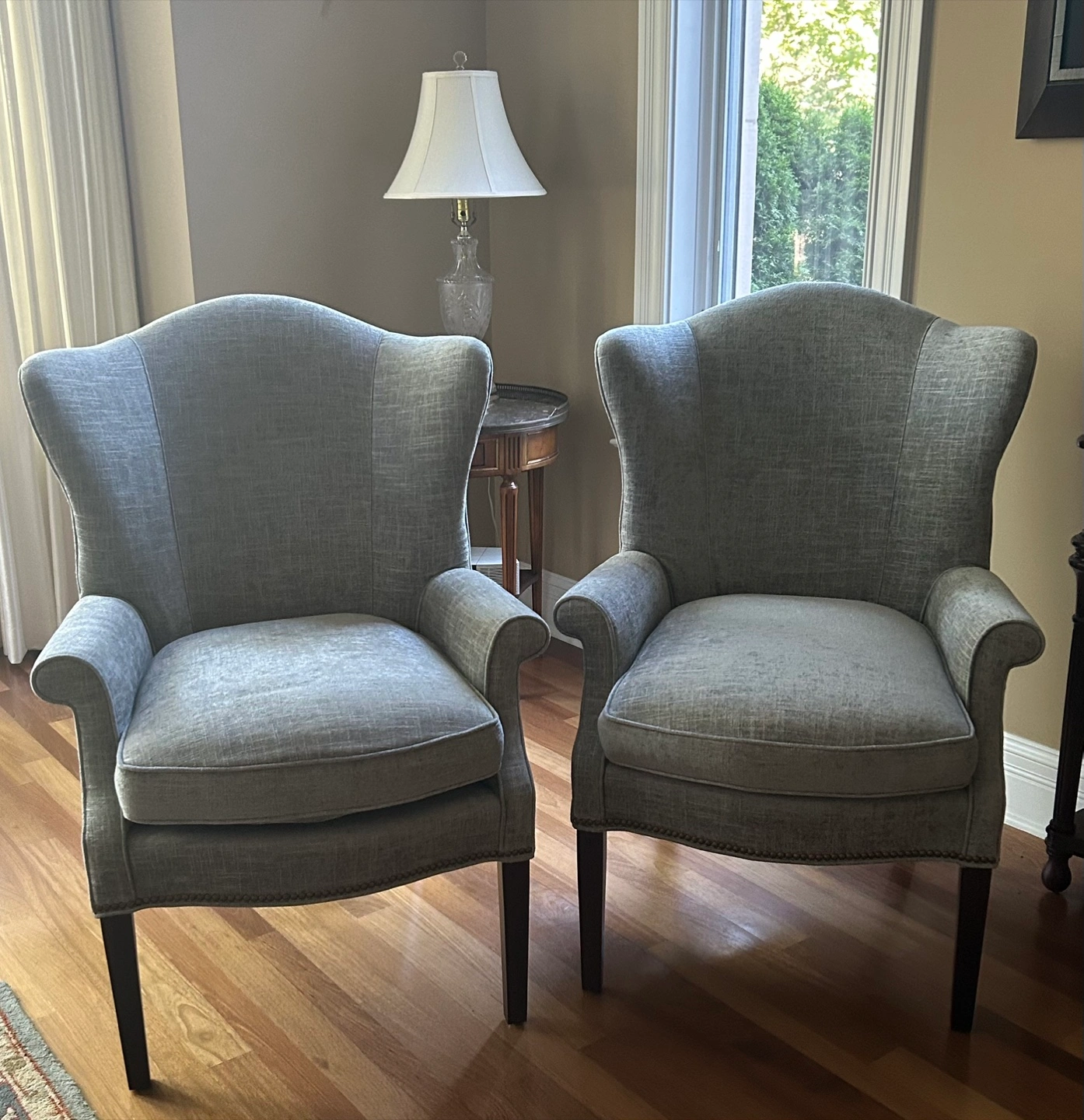 Selling a pair of Sherrill Furniture wingback chairs! They're in great condition and would look lovely in any living room or study. The chairs feature a classic design with nailhead trim and a comfortable, supportive structure.