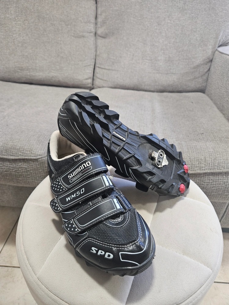 10Selling a pair of Shimano WM50 SPD cycling shoes in black. They are in good condition and ready for your next ride! The shoes feature the SPD cleat system.