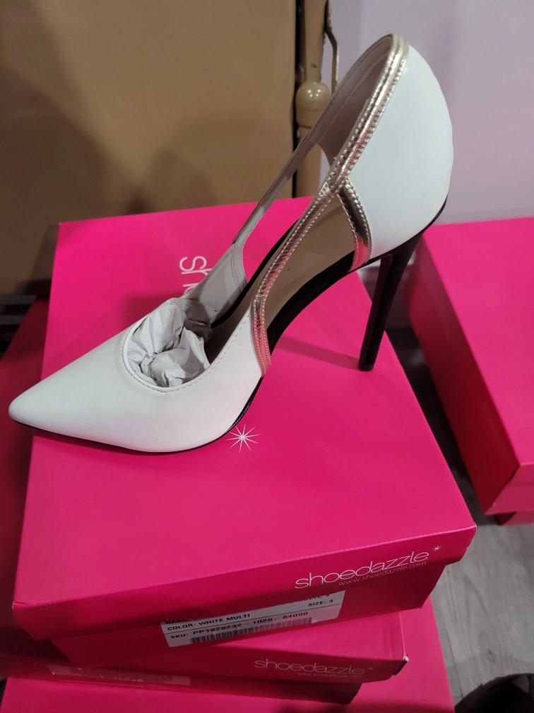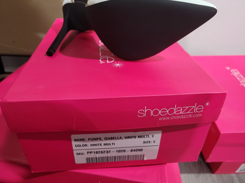 These ShoeDazzle Isabella pumps are in white multi color and a size 9. They're perfect for adding a touch of elegance to any outfit!