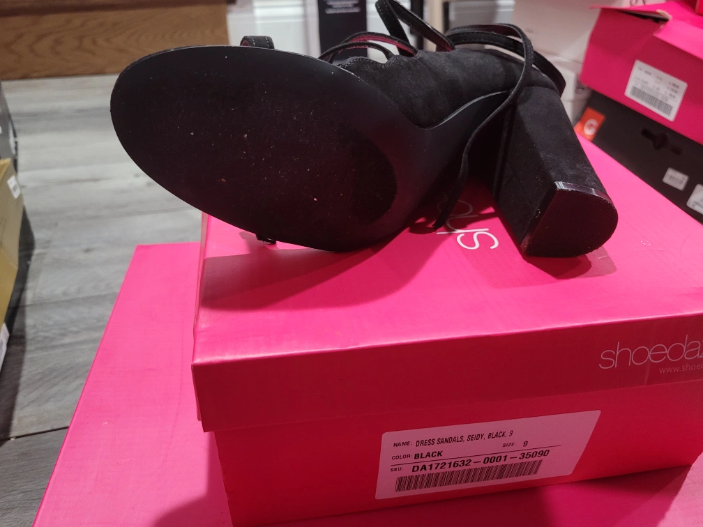 Selling a pair of Shoedazzle Seidy dress sandals in black, size 9! They come with the original box