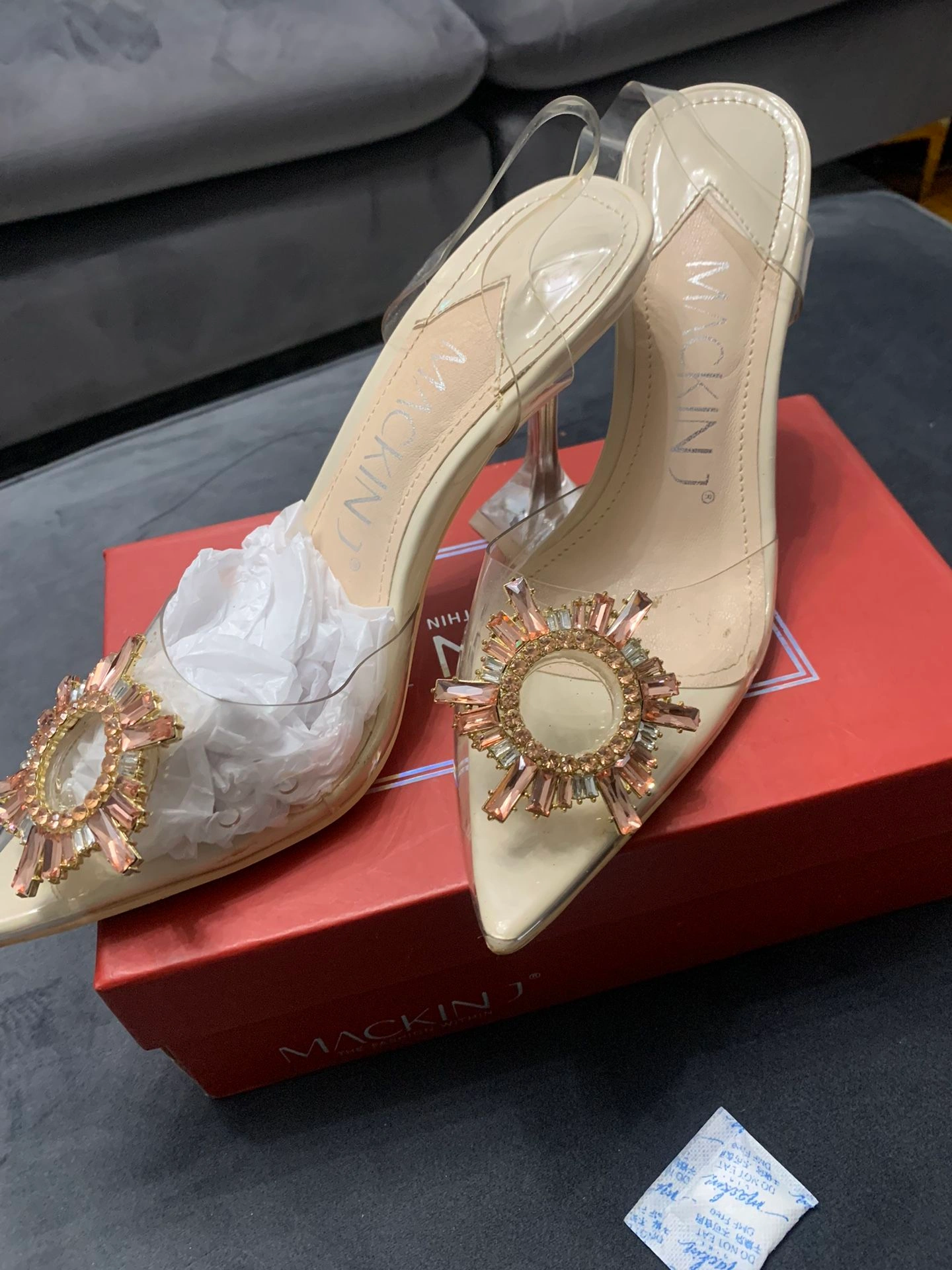 75Nude and gold clear 6in heel, like new, only worn once for a photo shoot. $25.