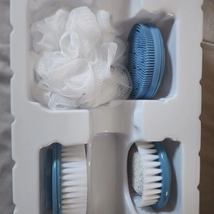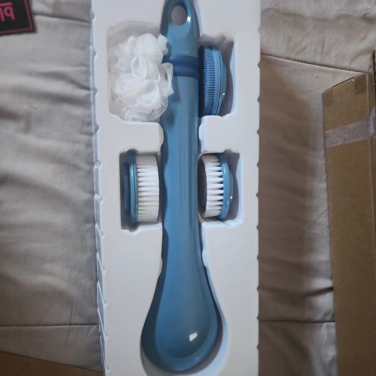 Electric body brush. Four brush heads included. Great for exfoliating and cleansing. Includes a pouf. Let me know if you're interested!