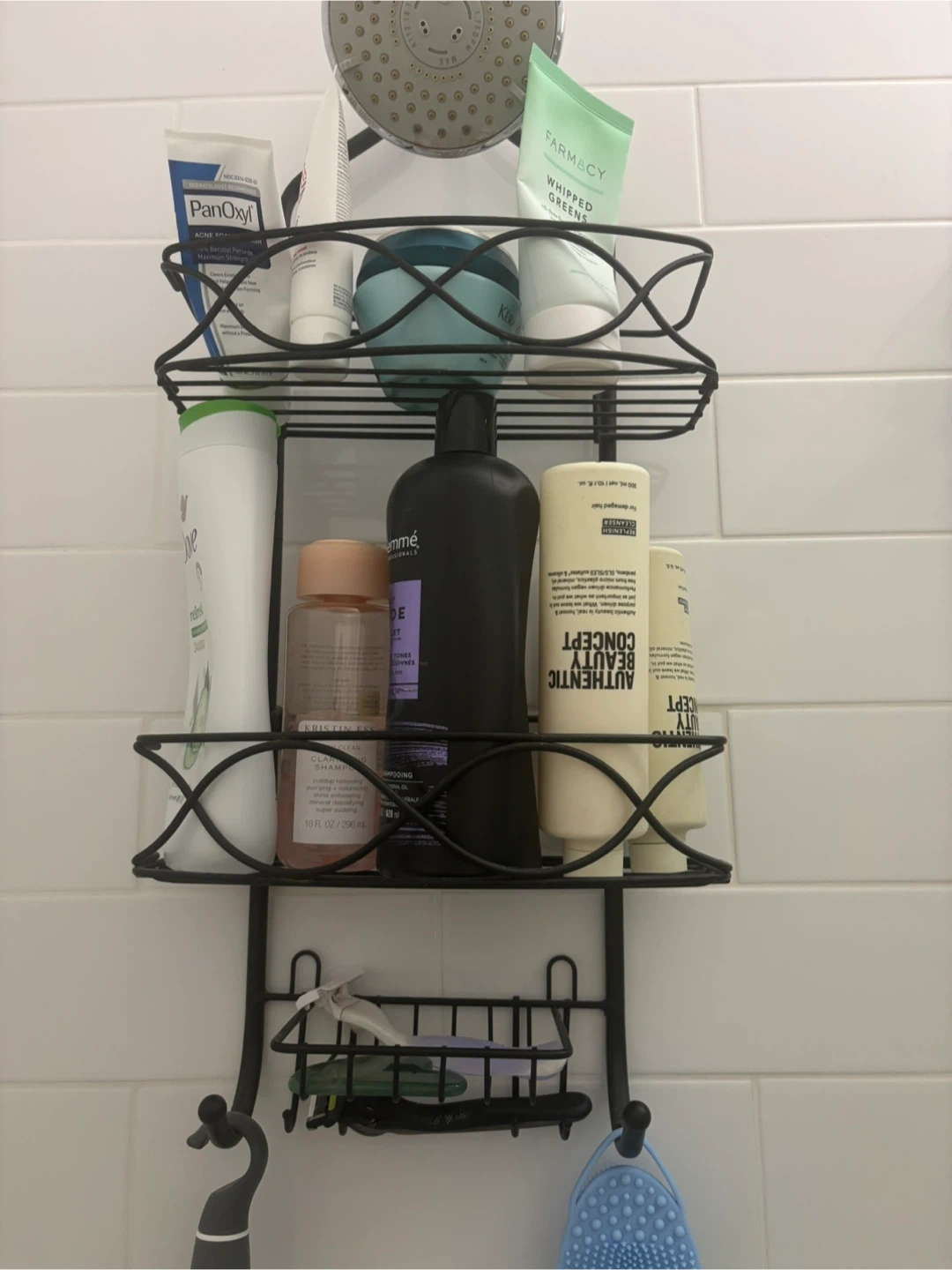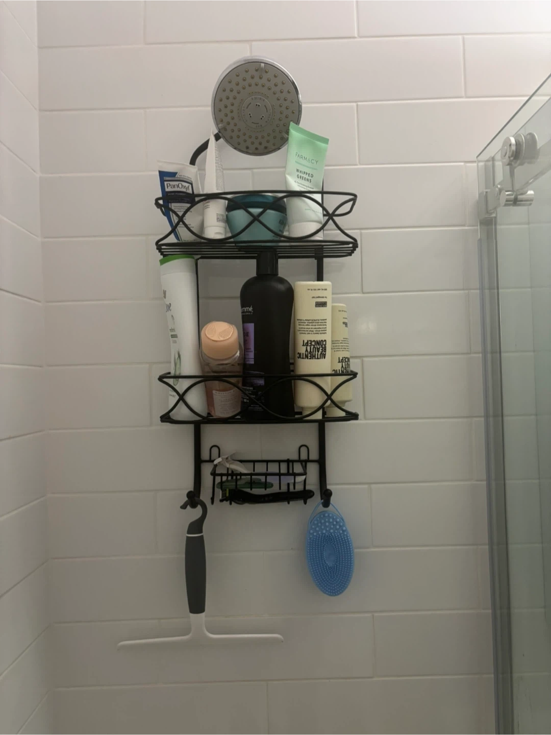 Selling a handy shower caddy that hangs right over your shower head! It's perfect for keeping all your essentials organized and within easy reach. Great for small bathrooms or anyone who wants to maximize their shower space
