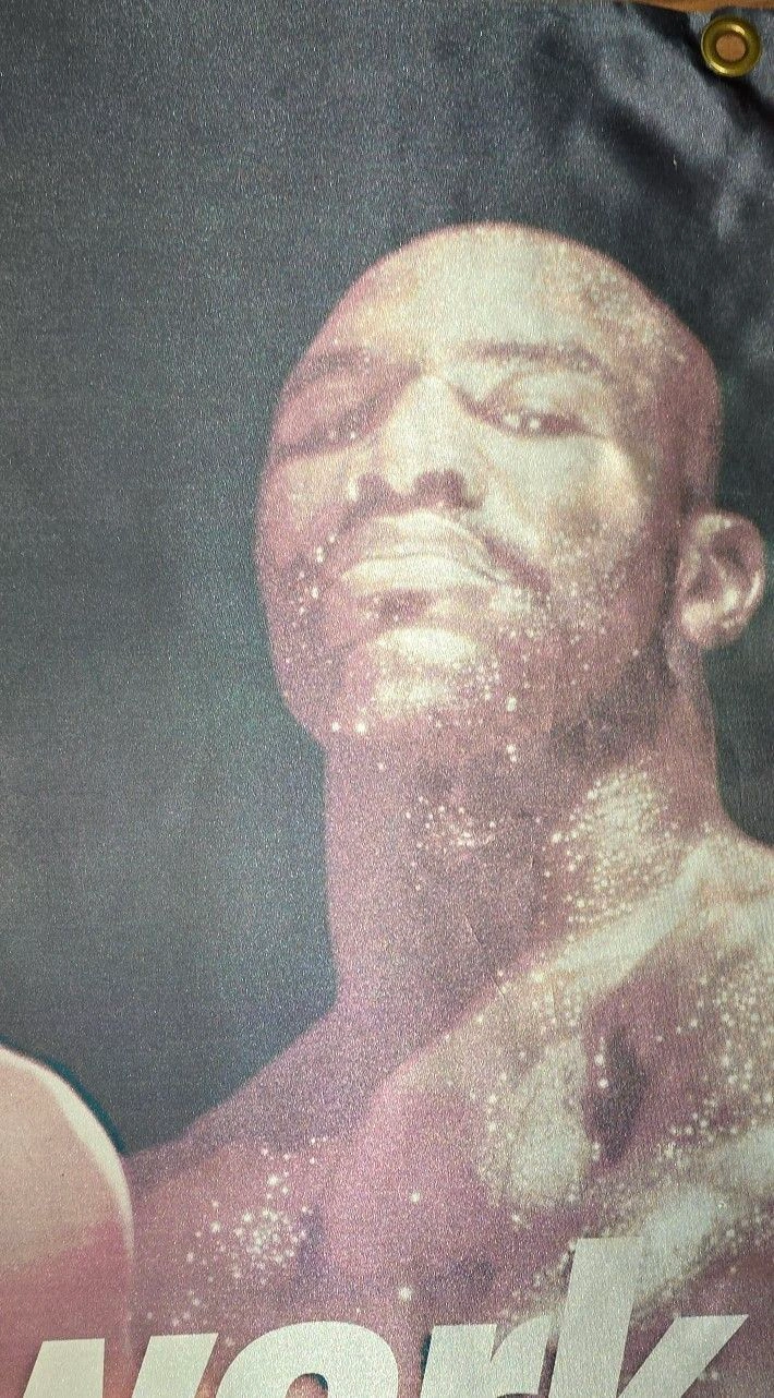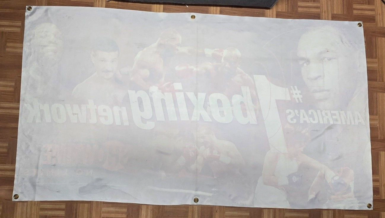 A super rare 39in. x 70in. large promotional banner from Showtime Networks in mint condition except for the fold creases from 25 years (easily ironed out). Featuring boxing imagery of fighters from the era like Mike Tyson, Evander Holyfield, Christy Martin, Johnny Tapia in their prime. Screened printed vinyl silky smooth feel in your hands. A must have for any boxing or sports fan. Got this from the sales department at a cable company I use to work for who used these promo items and sometime individual gifts to influence the sales people to sell their cable channel package to customers on the phone. Would look insane pressed and framed hang in your office or home as a center piece. Best and reasonable offers entertained. BANNER FEATURES FIGHTERS MIKE TYSON, EVANDER HOLYFIELD, CHRISTY MARTIN AND JOHNNY TAPIA Feel free to message if you have any questions!