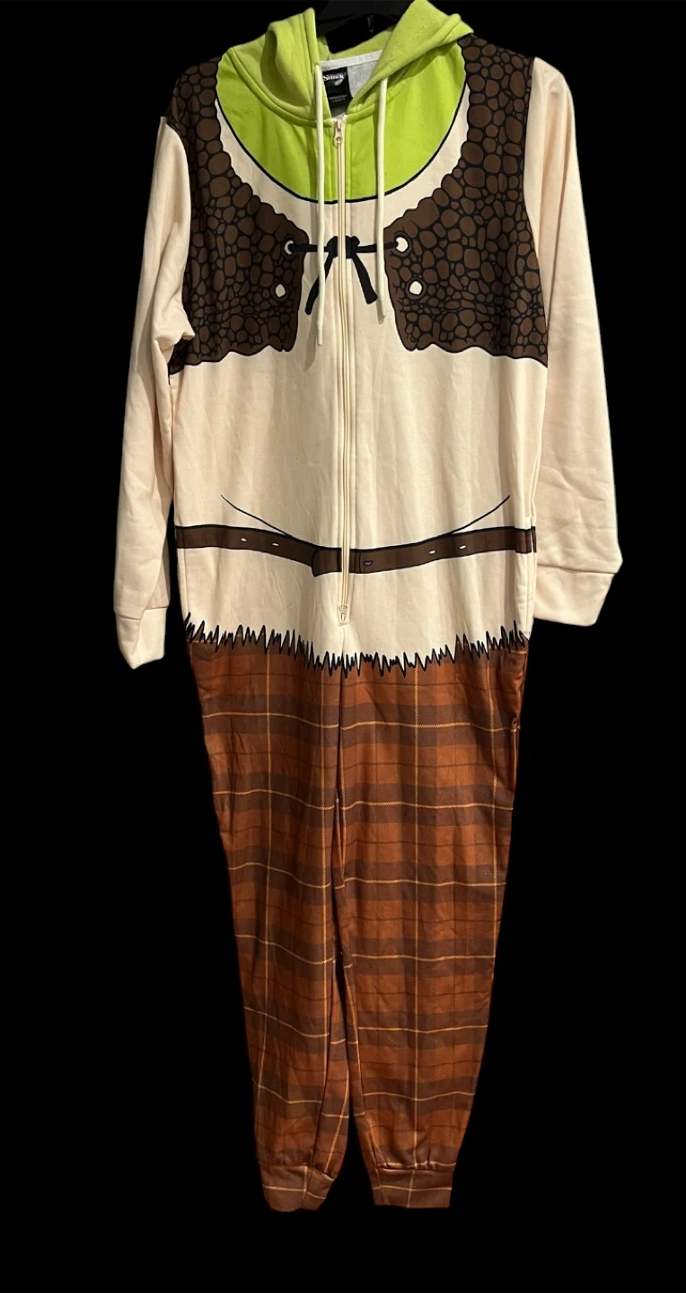 Get ready to lounge around in this fun Shrek pajama also can be used as costume .It's a size large and features the iconic Shrek design. Perfect for movie nights or just relaxing at home
