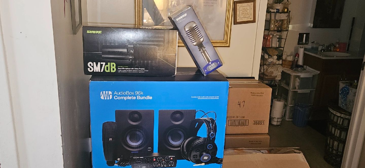 10Selling a Shure SM7dB Vocal Microphone with Active Preamp and a PreSonus AudioBox 96k Complete Bundle! Both come with their original boxes. Great for anyone looking to upgrade their recording setup