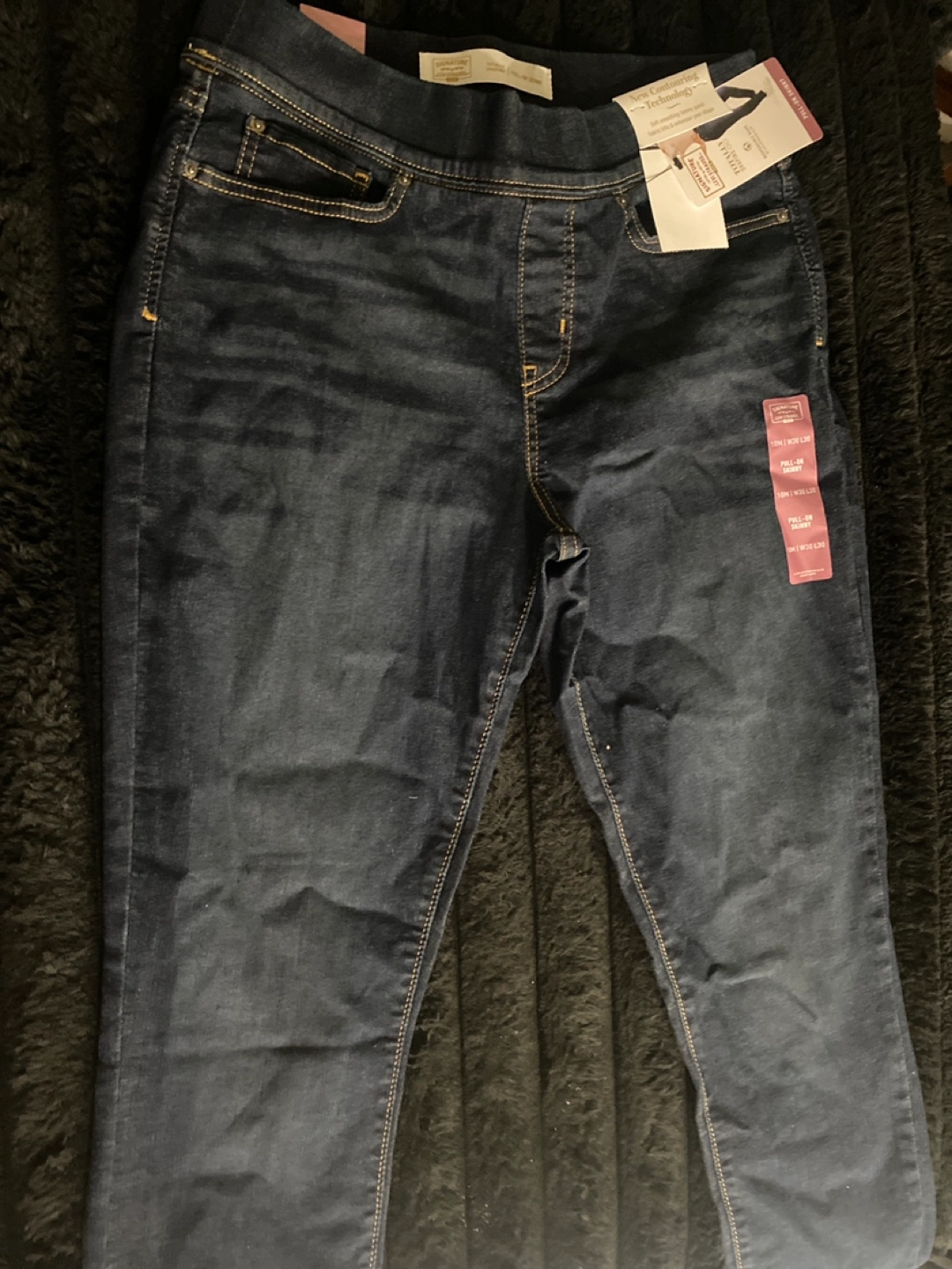 These are Signature Studio pull-on skinny jeans in a dark wash. They are a size 10W and have new contouring technology. The jeans are in excellent condition and ready for a new home!