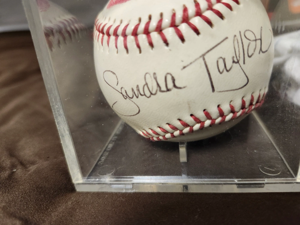 Selling a baseball with a signed by Playboy Playmate Sandra Taylor in a clear protective with her lip print and a COA case. It's in good new condition and ready for a new home!