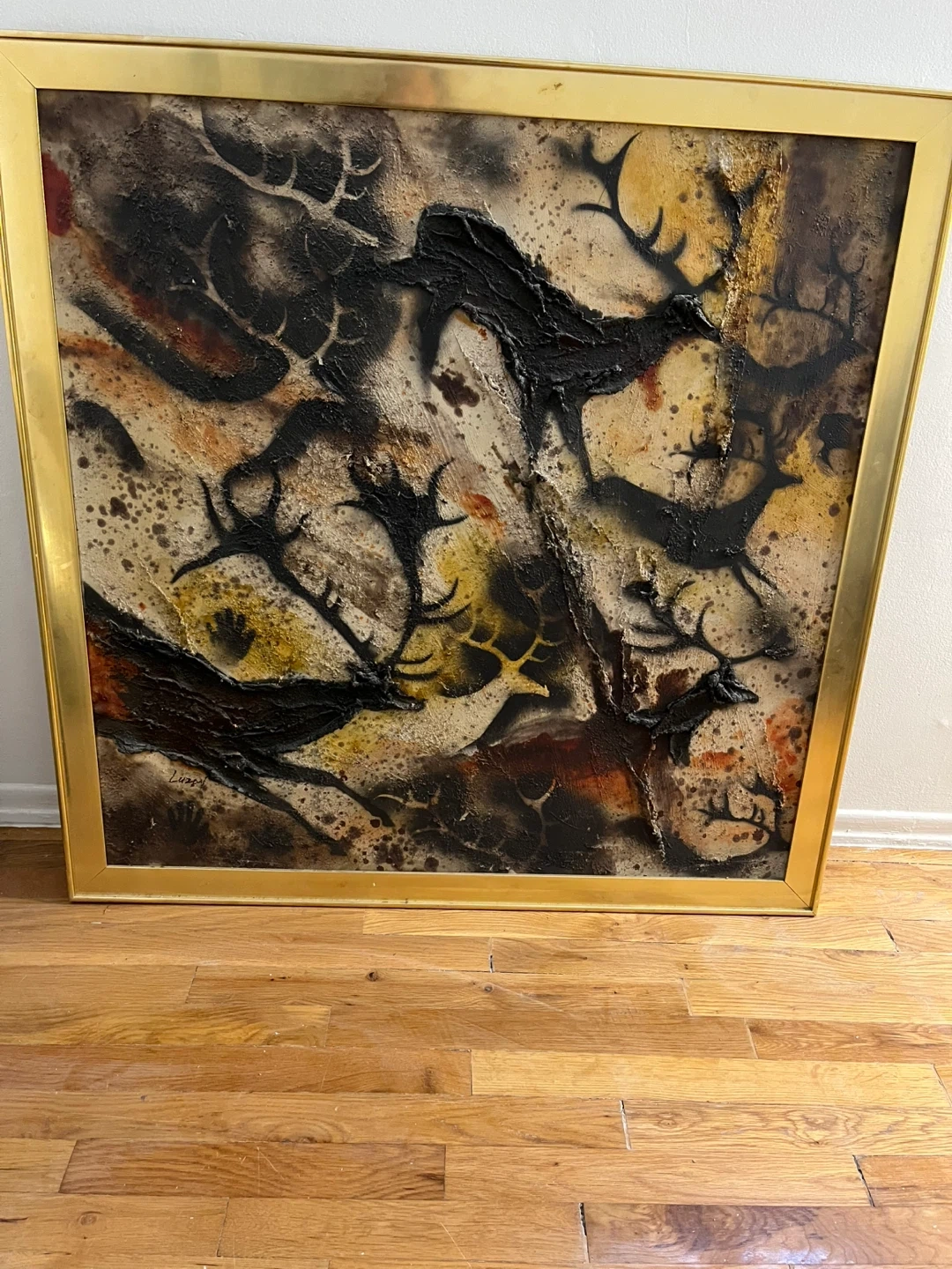 15Running deer painting with a gold frame. It has a unique design and would look great in any room