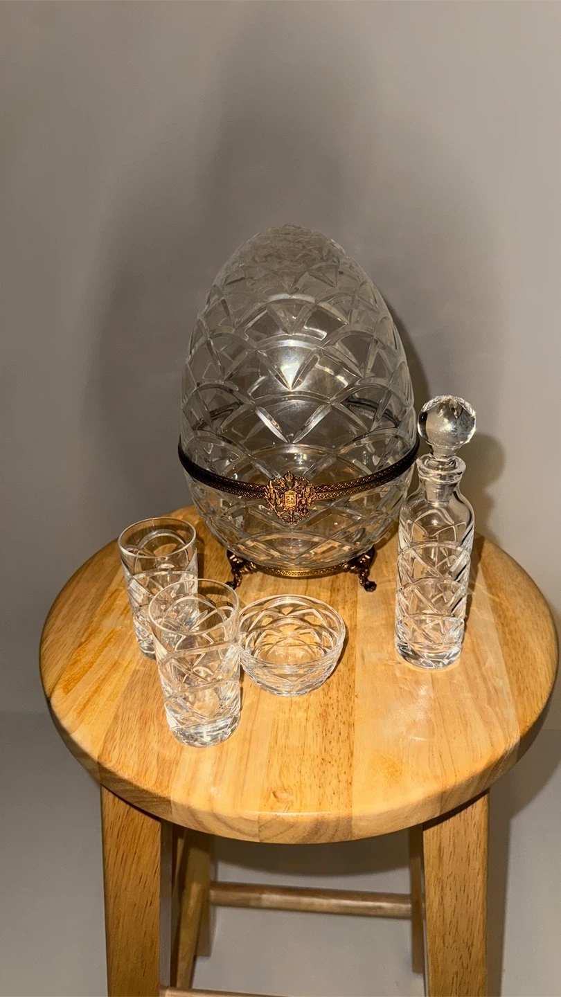 CRYSTAL EGG-FORM CAVIAR/VODKA Set. Perfect for adding a touch of elegance to your home bar or