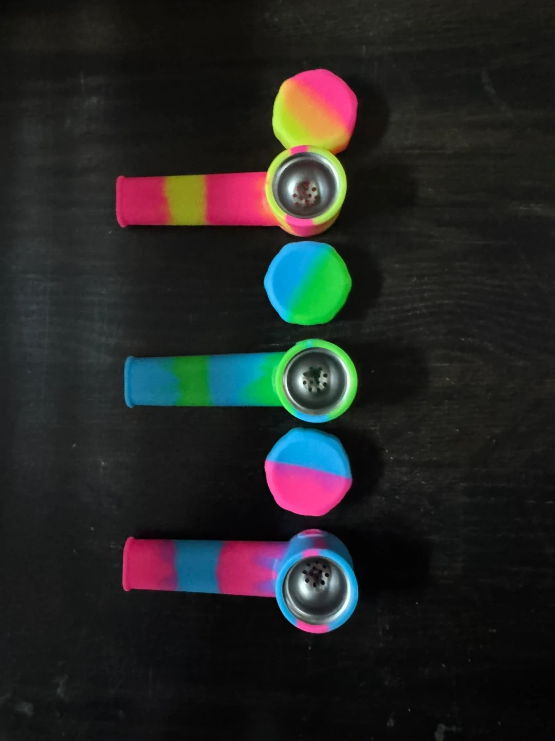 This unbreakable, pocket-size, silicone spoon pipe is the perfect hand pipe to carry along with you on the go, without worrying about breakage. It is made from durable, heat resistant food grade silicone and measures 8.5 cm (3.3 inches) in length. A silicone lid allows you to have a bowl ready for action at any time and also prevents remains from falling into your pocket or purse after use. It features a deep metal bowl that is equipped with numerous small holes, which allows you to use it without a screen and it also prevents ash and debris from traveling into the pipe. The carb hole is placed on the left side of the bowl. This silicone spoon pipe comes delivered in a random striking color or color combination, depending on availability.
