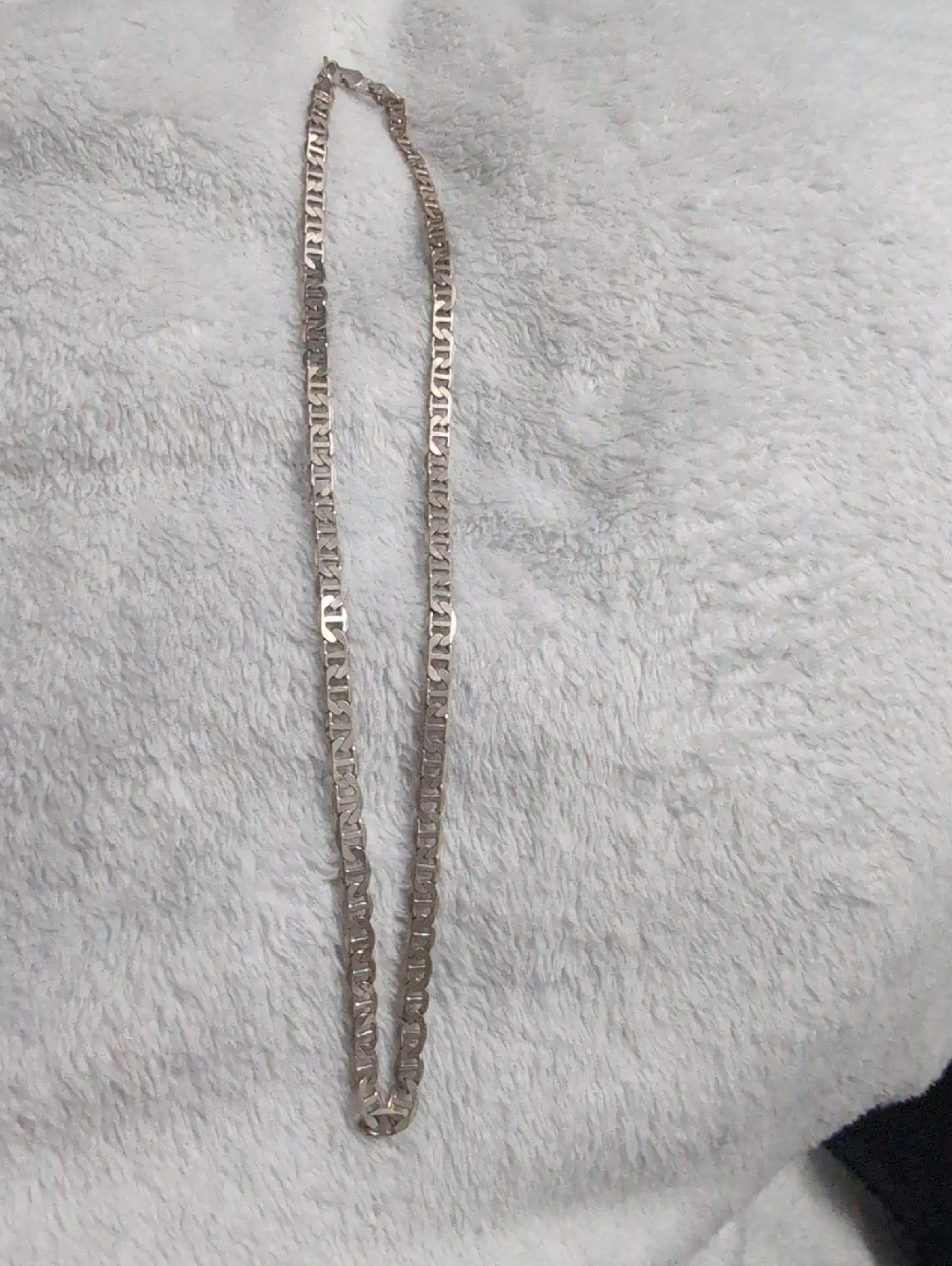 Selling a silver chain necklace. It appears to be in good condition and has a unique mariner link design. Perfect for adding a touch of style to any outfit