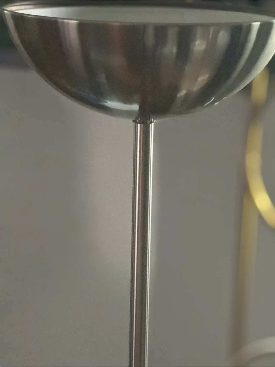 If you are reading this listing item is available. Item will be removed once item is Sold.Message me when you’re ready to arrange pickup. Thanks Selling a silver floor lamp that comes with an adjustable reading light. It has a bowl-shaped shade and a circular base. There are some signs of wear on the base. Lamp has some damage to base during moving but works & still looks great would really have to get up close to see it. Sofa also available check out my other items on the listings thanks Tags postmodern mcm mod modern minimalist chiclet chair parsons chair milo baughman thayer coggin memphis chair print chairs arm chairs club chairs lounge chairs vintage retro chairs vintage furniture vintage sofa vintage couches loveseat couch moving sale vintage table antique furniture Antique table Antique chairs vintage lamps sofa table cocktail table coffee table curved sofa curved loveseat curved couches paisley chairs paisley print sofa paisley couch comfy sofa chase lounge ottoman barstools round dining table dining chairs dining table solid wood furniture Chase lounge sofa, Dining Sets, Ottomon Vintage,Solid Wood,Mitchell Gold Bob Williams, MG+BW, Crate & Barrel, West Elm, DWRm Design Within Reach, Pottery Barn, RH, Restoration Hardware, CB2, Modern, Contemporary, Industrial, Z Gallerie, Arhaus, Pier 1, Walter E. Smithe, Overstock, Wayfair, Anthropologie, Loft, Howell Chairs, howell chair, Howell kitchen chairs, Howell dining chair, black vinyl, wood chairs, Metal chairs,Vintage 1975 Barrel Leather Chairs, Walter E. Smiths, Nathan James, KLER, CANVAS PRINTS OF ROME ITALY-THE COLISEUM, THE TREVI FOUNTAIN, Glass Dining Table, Floor Lamp, Reading Lamp, Black Leather Dining Chairs, writer’s Desk, Scandinavian Wood Desk, Contemporary Desk,Baby rocking chair, lounger chair, lounging chairs, slipper chairs, Lazy Boy Chair, Lazyboy ,Recliner Chair, Reclining Chair, Nursery furniture, microseal protector, Furniture.