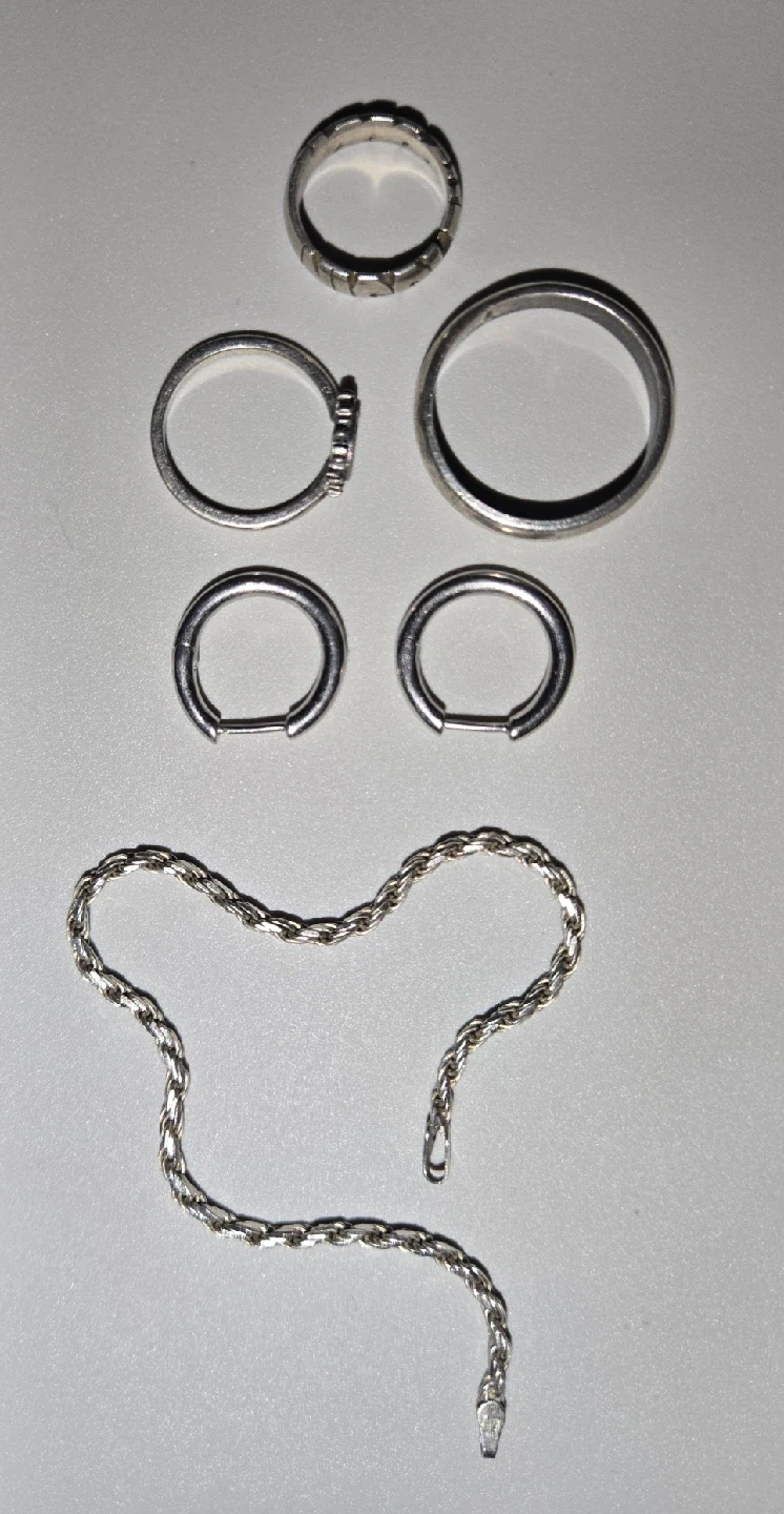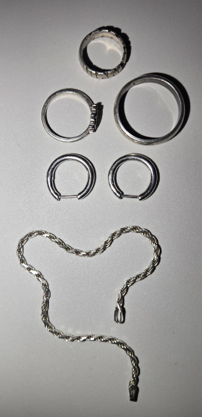 65Selling a set of silver rings and a bracelet. They're in good condition and ready for a new home!