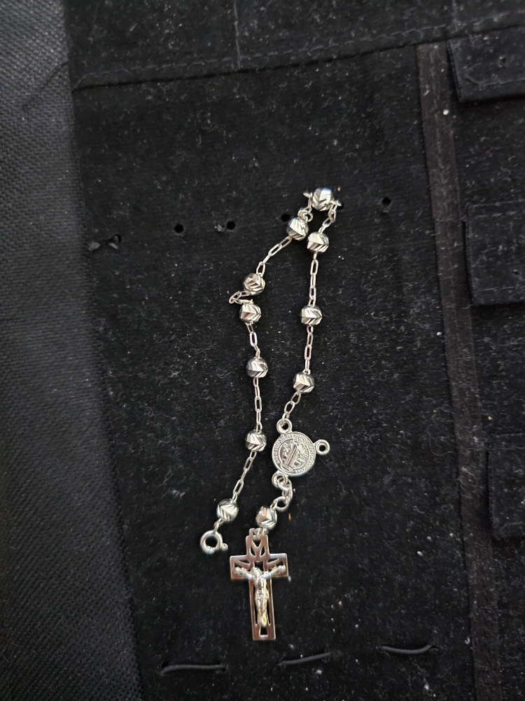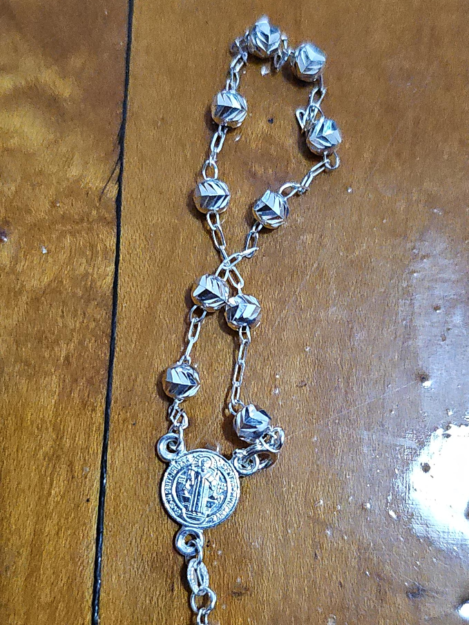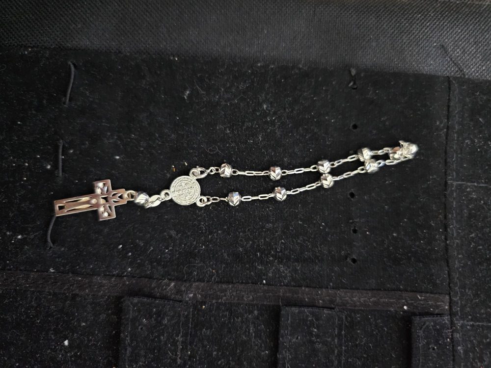 15Selling a silver rosary bracelet. It's in good condition and has a beautiful design. Perfect for daily wear or as a thoughtful gift