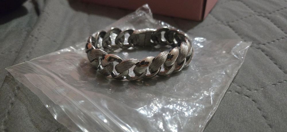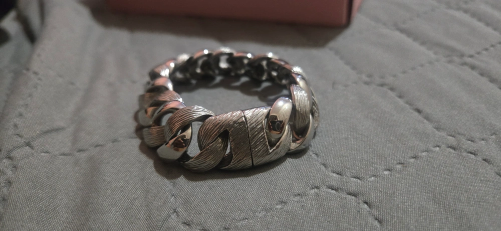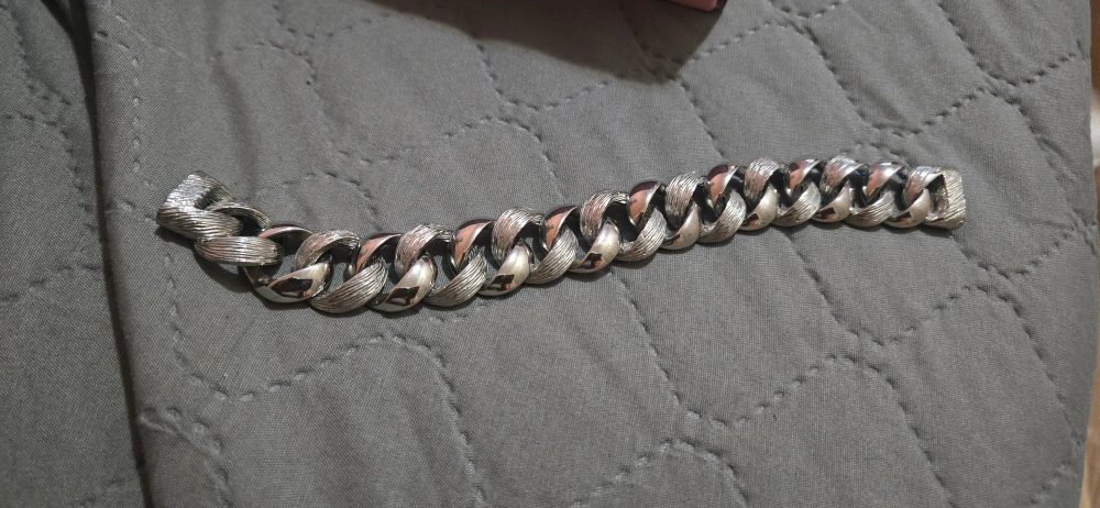 Selling a really cool silver tone bracelet! It's new and ready for a new home! The bracelet has a nice weight to it and a secure clasp