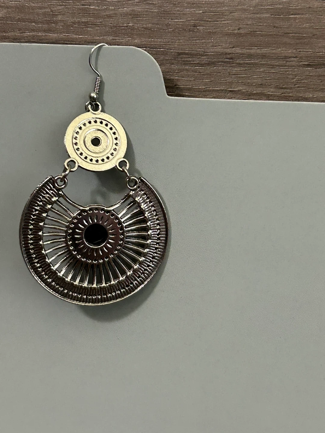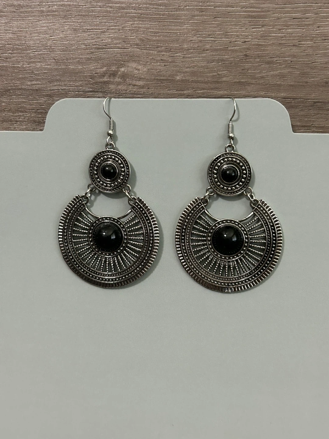 Selling a pair of silver tone Western Style drop earrings with black stone accents. They're in like new condition and ready to add a touch of style to any outfit! These earrings are French hook style and they are 3” long.