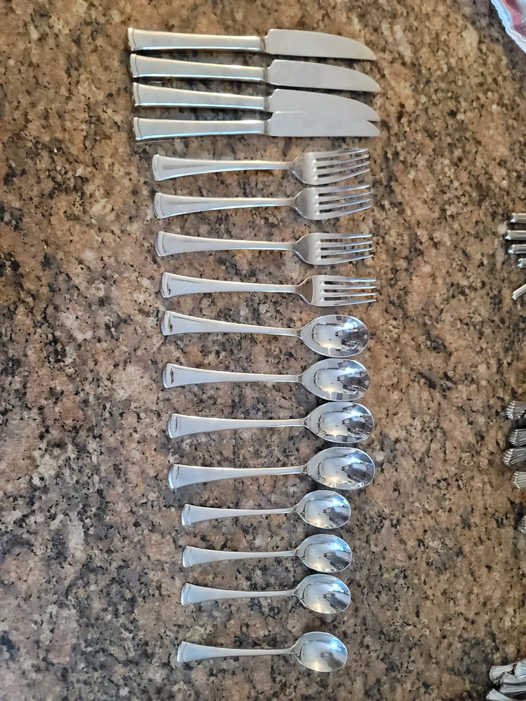 18I'm selling a set of 4 each silverware that includes spoons, forks, and knives. They are like new condition and ready for a new home! Perfect for everyday use or special occasions pick up in Merrick Ny CASH ONLY