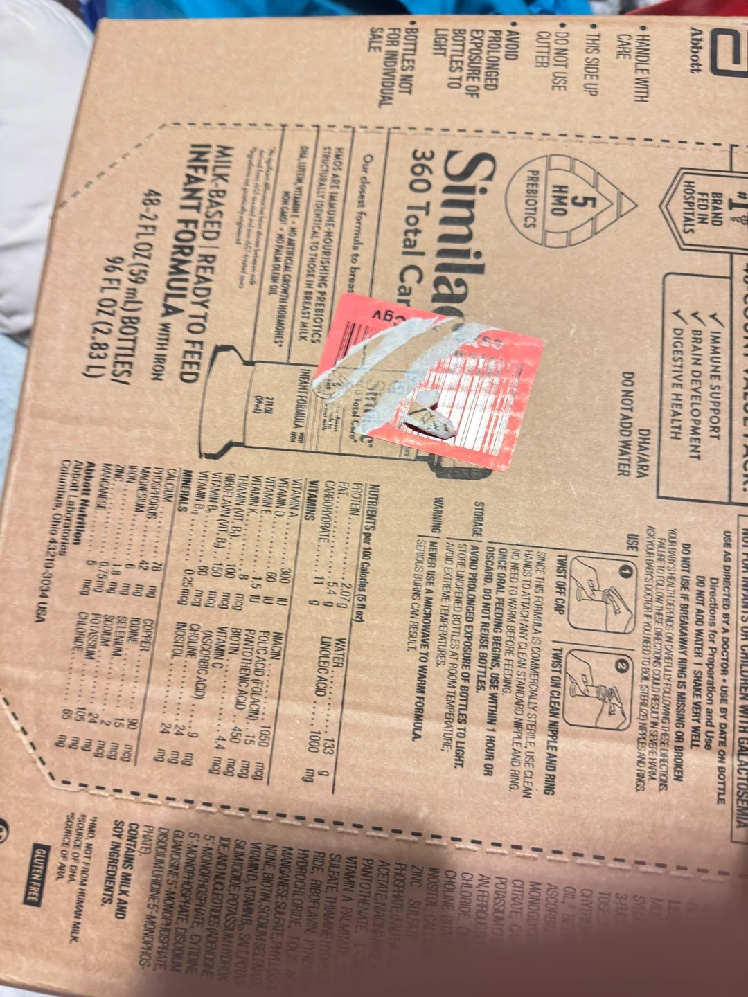 10I have Similac 360 Total Care Infant Formula bottles for sale. Each bottle contains 2 fl oz of ready-to-feed formula with iron. The expiration date is APR 2026. Unopened Box Plus 36 single ones (9 packs of 4 out of box)