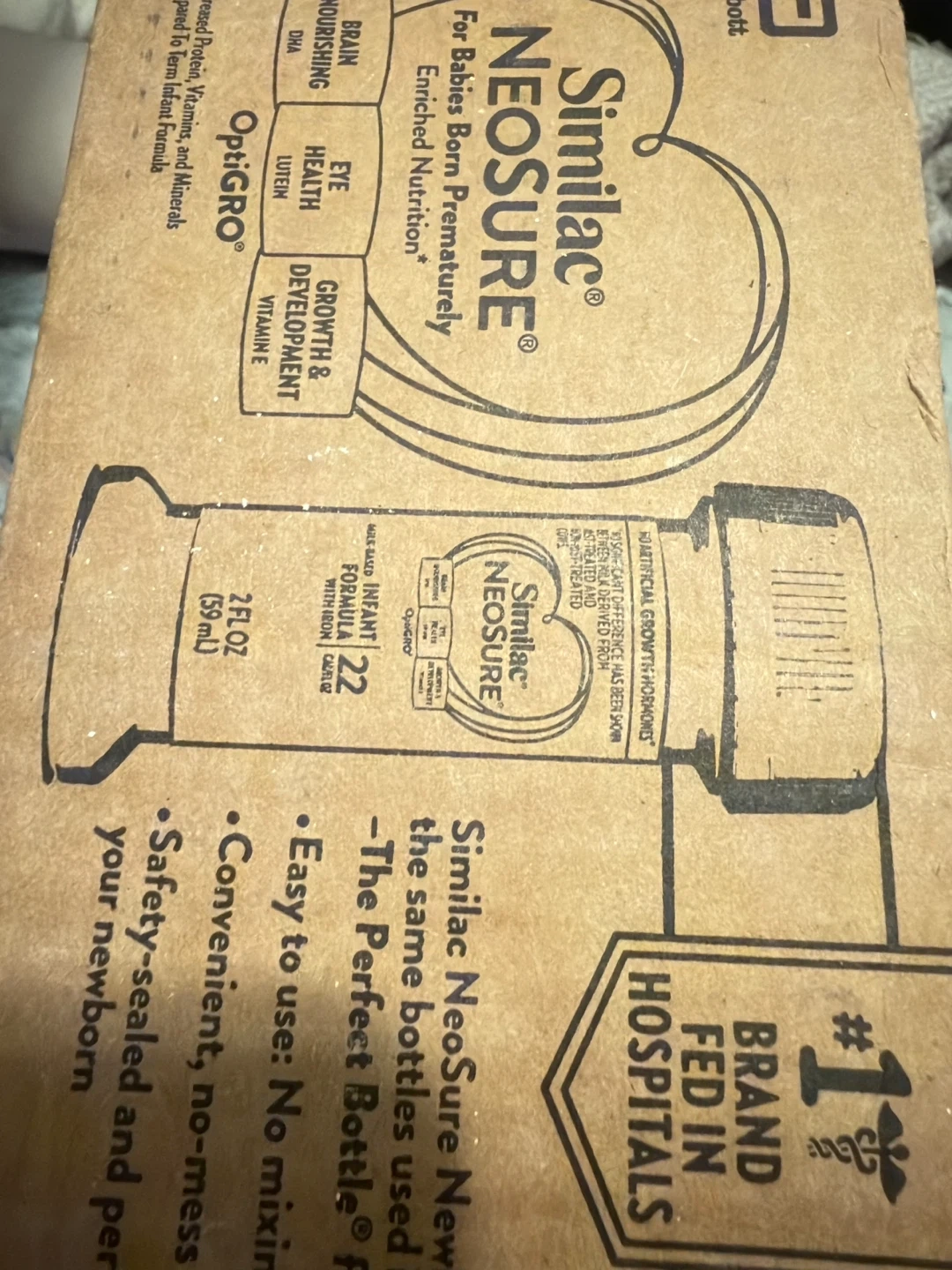10Selling Similac NeoSure infant formula for babies born prematurely. It's enriched with nutrition for brain, eye health, and growth development. Each bottle contains 2 fl oz (59 mL) of milk-based formula with iron. It’s easy to use, convenient, and safety-sealed for your newborn.