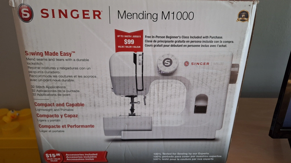 15Selling a Singer M1000 sewing machine new , It's a compact and capable machine, perfect for mending seams and tears with a durable lockstitch. It has 32 stitch applications and is lightweight and portable. Originally bought for $99, the box is included!