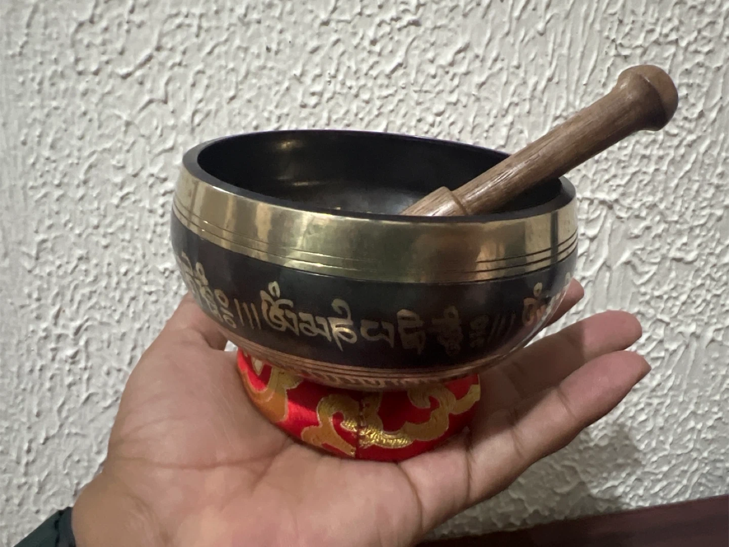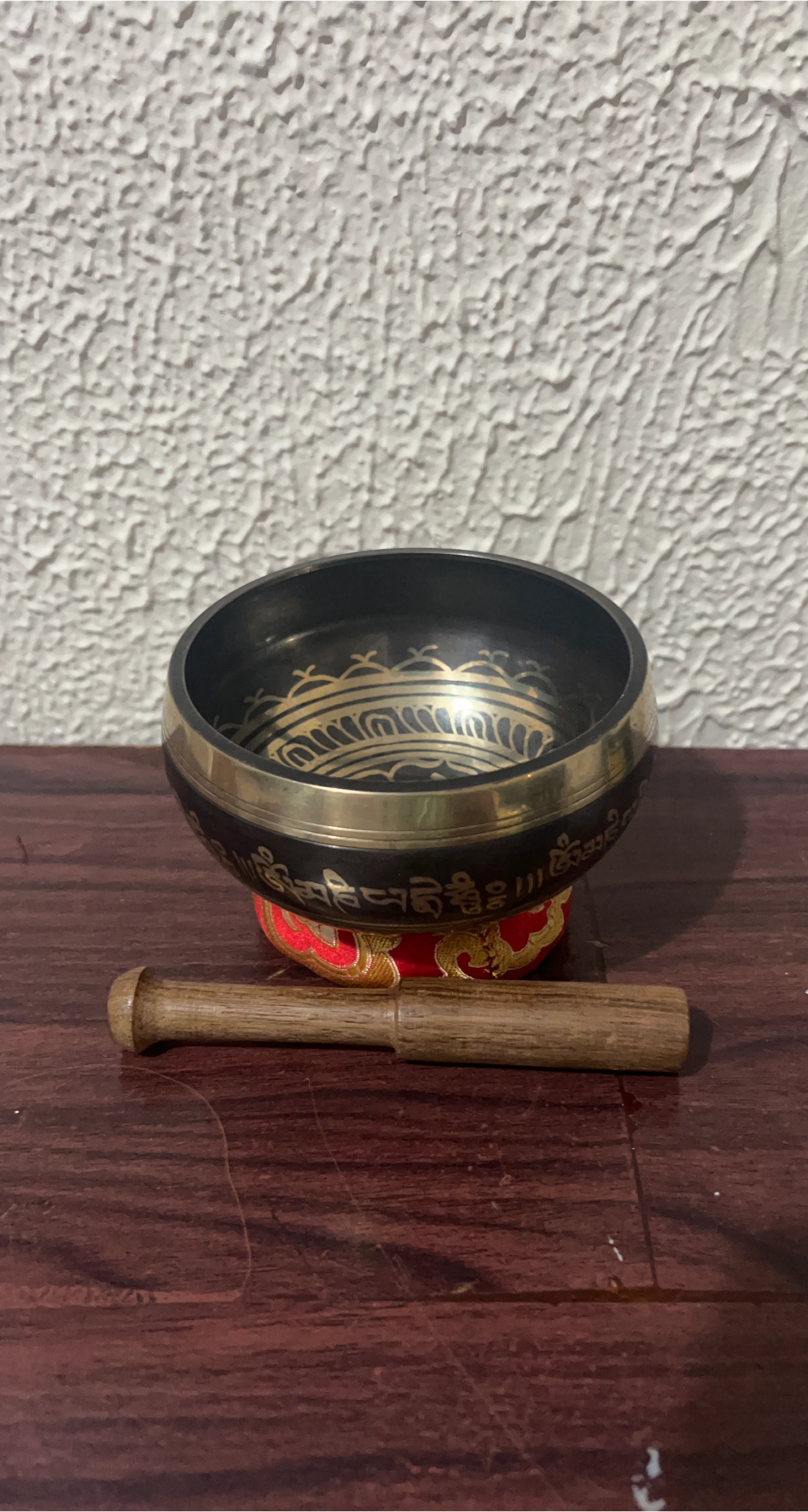 Selling a singing bowl, perfect for meditation and relaxation! It comes with a striker to produce soothing sounds. The bowl has intricate designs and is in great condition