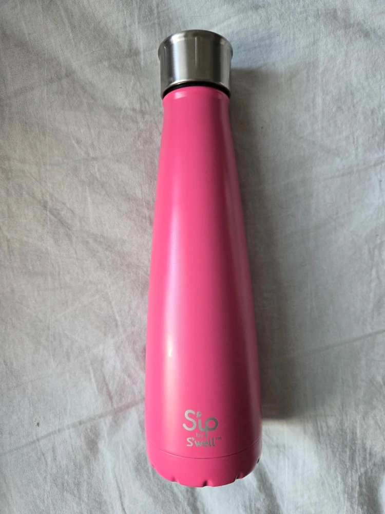 70Selling a pink Sip by S'well water bottle. Paint on the bottom came off a little bit but other than that it's perfectly fine!