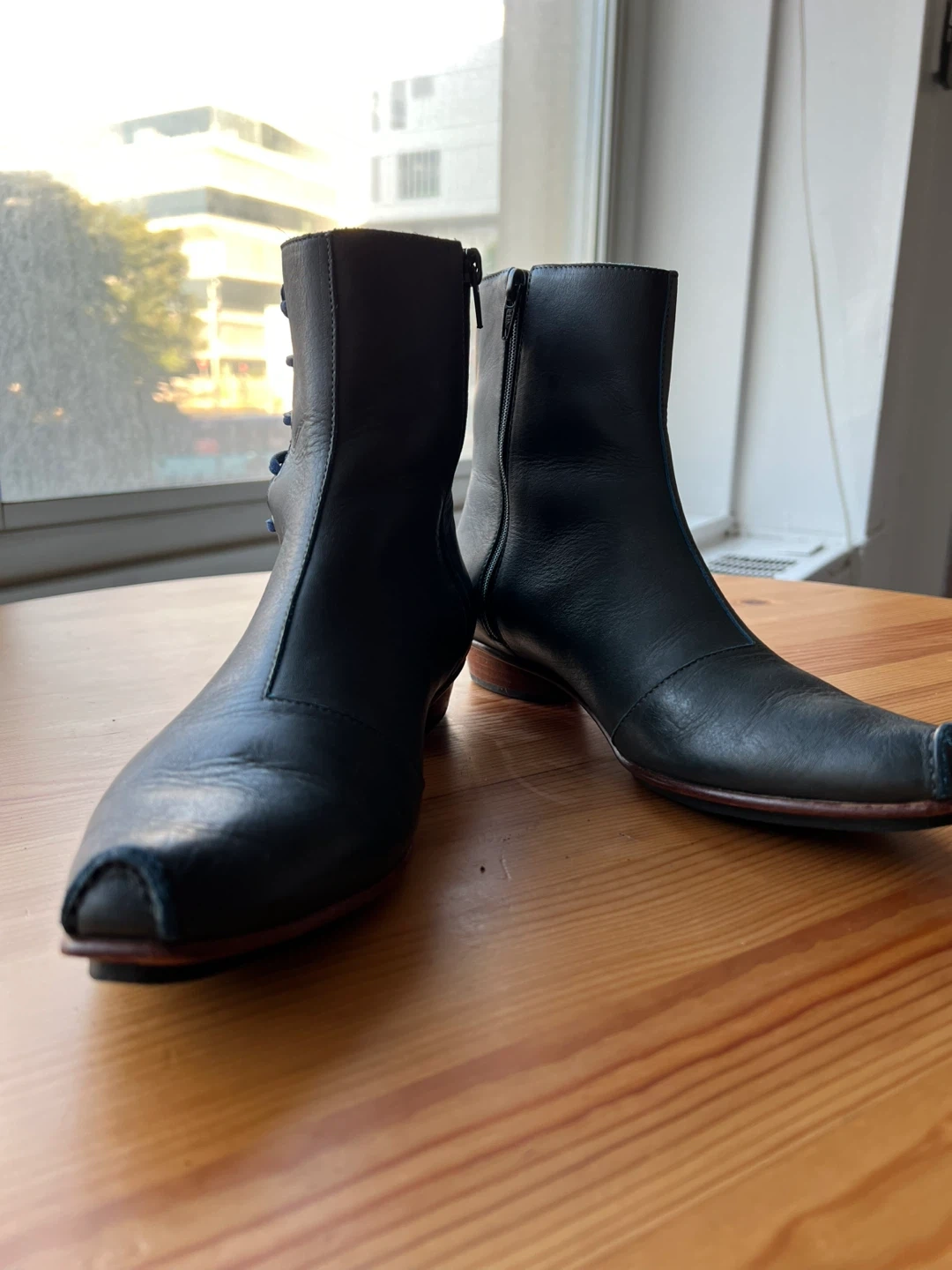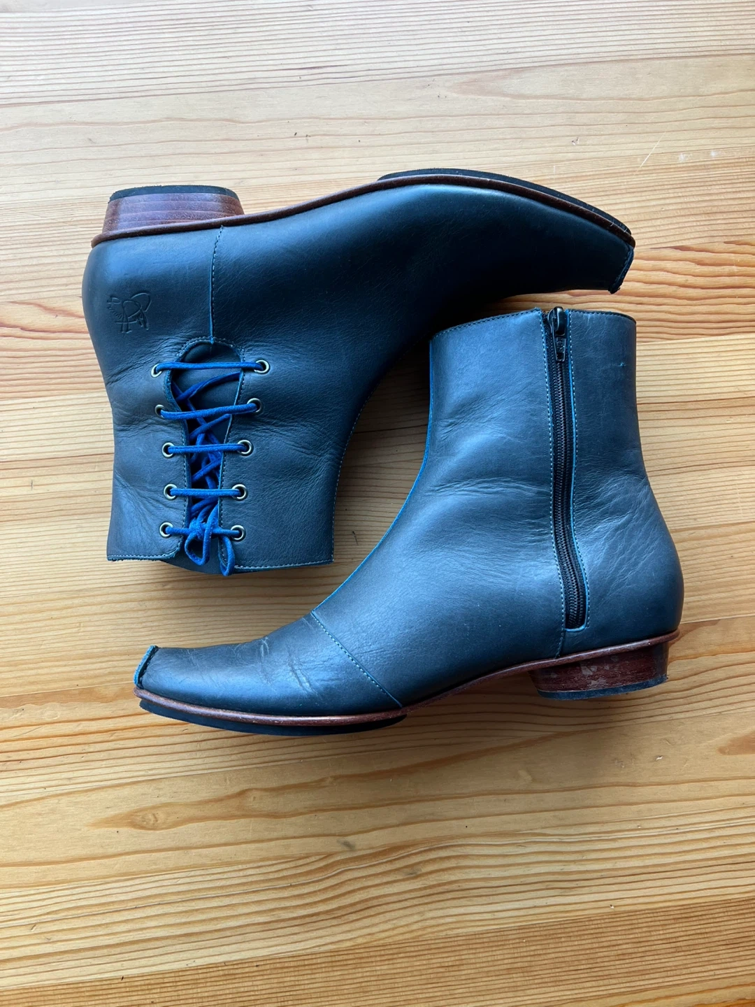 Leaving NY in the Winter 🥲🥲 These are gorgeous boots and I dropped the price down a ton so I hope someone can keep their story alive in NYC… 🔥🔥 Selling a pair of leather ankle boots in size 8.5. They have a unique design with laces on the back and a zipper on the side. The sole indicates they are made in Peru from Vero Cuero (genuine leather)