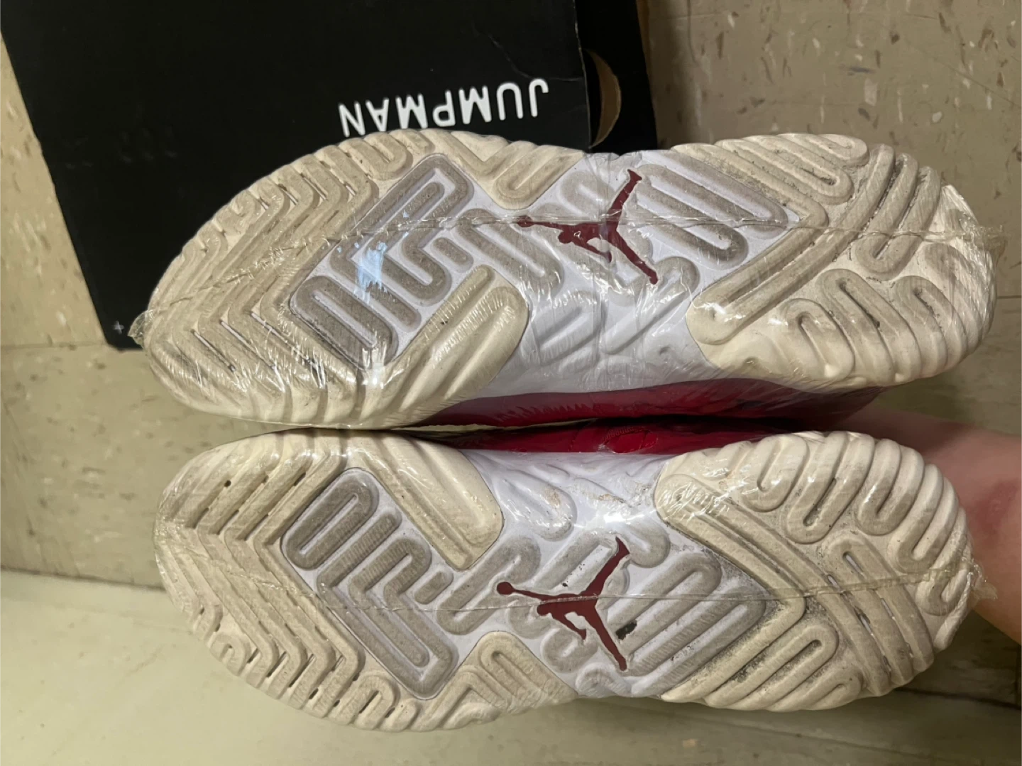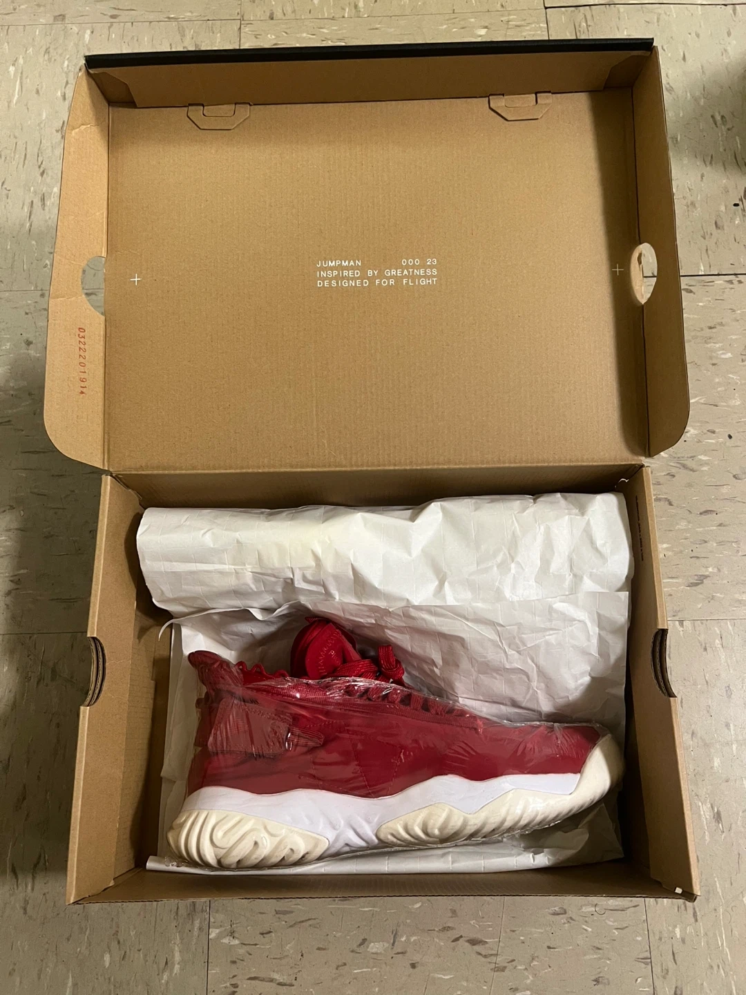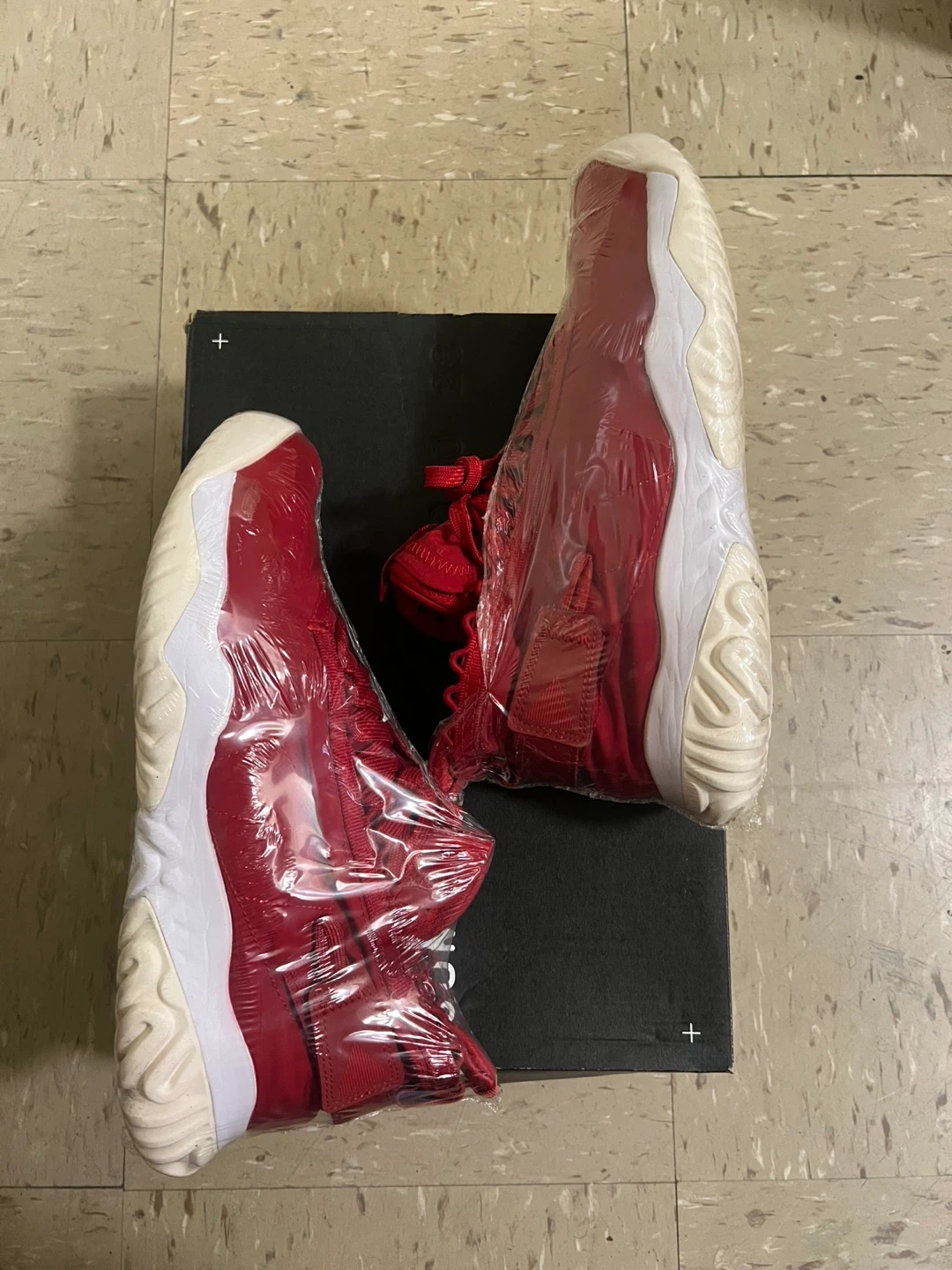 145Size 9.5 pre-owned pair of red and white Jordan Proto Reacts My ex plastic wrapped em for some reason Please message before buying