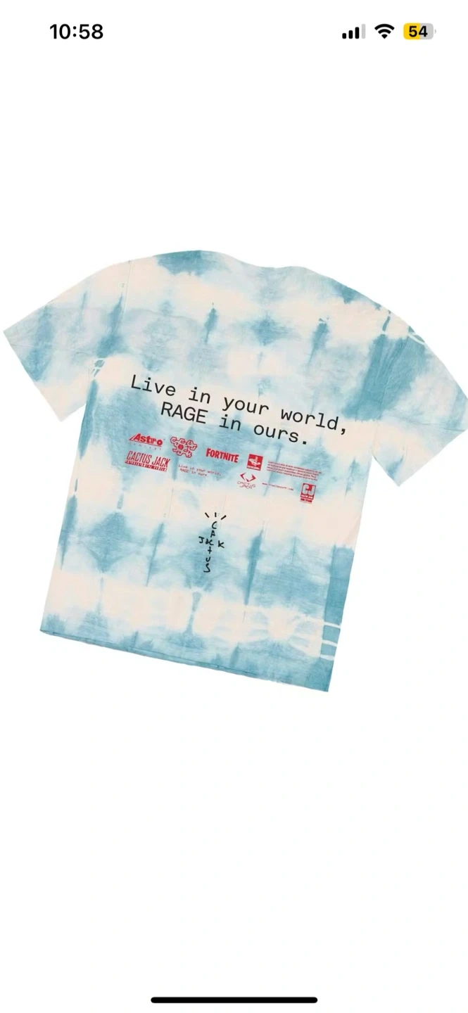 172NEW Size M Cactus Jack The Scott’s World 2020 blue and white tie dye tee shirt Originally $55 Please message before buying