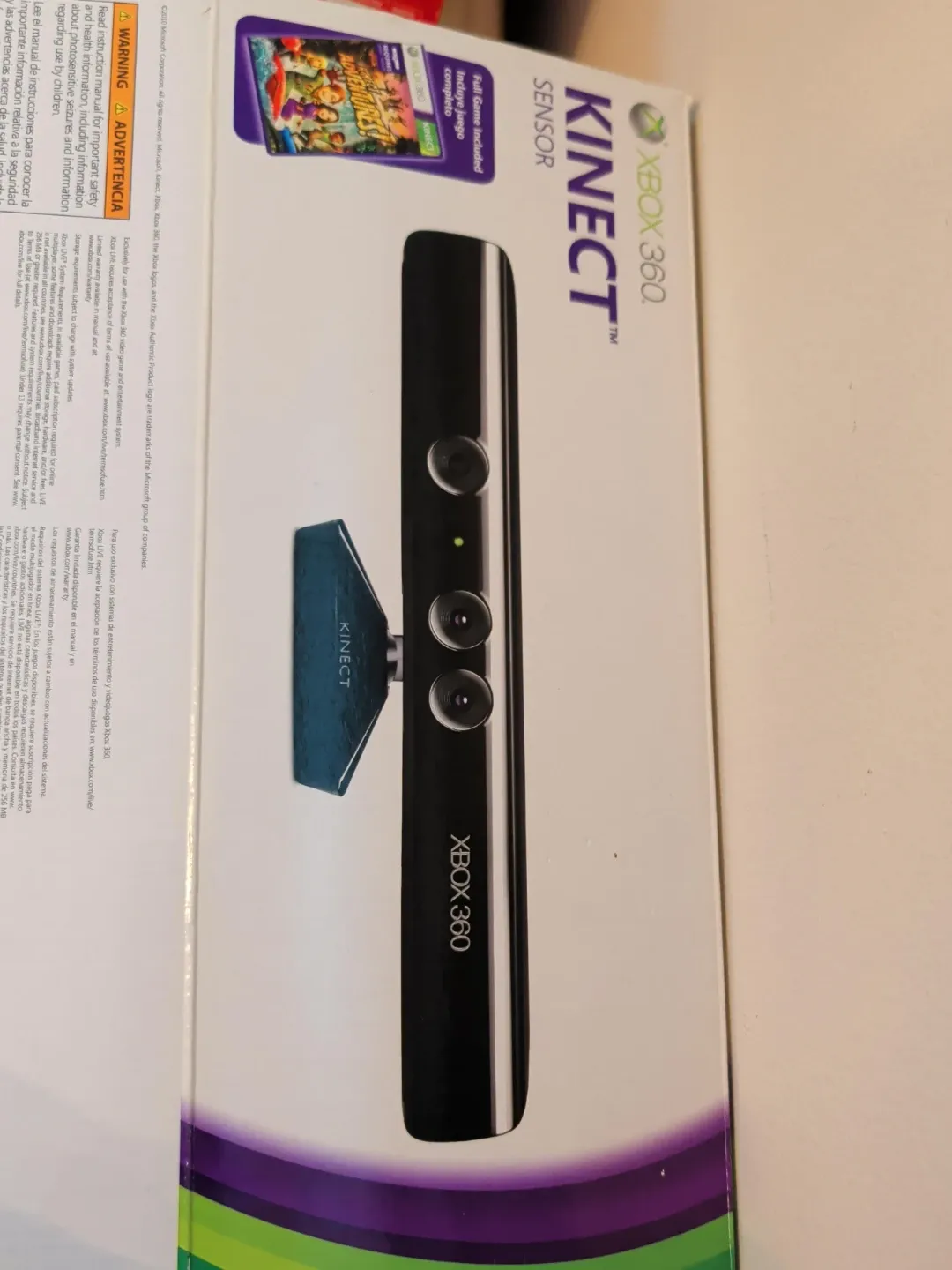 This is the Xbox 360 Kinect Sensor, along with the Kinect Adventures game. It's compatible with the Xbox 360 console. The sensor allows for controller-free gaming and entertainment.