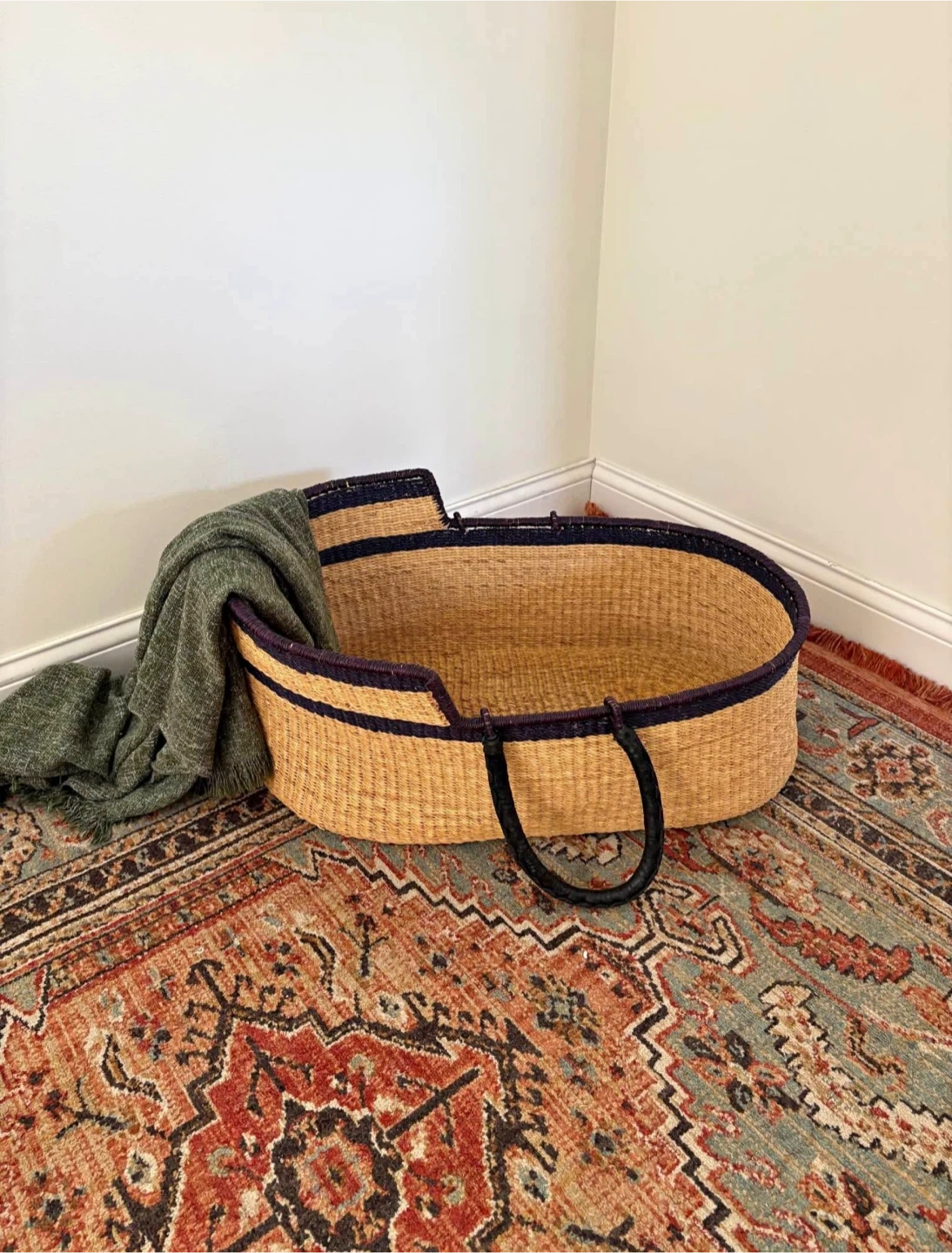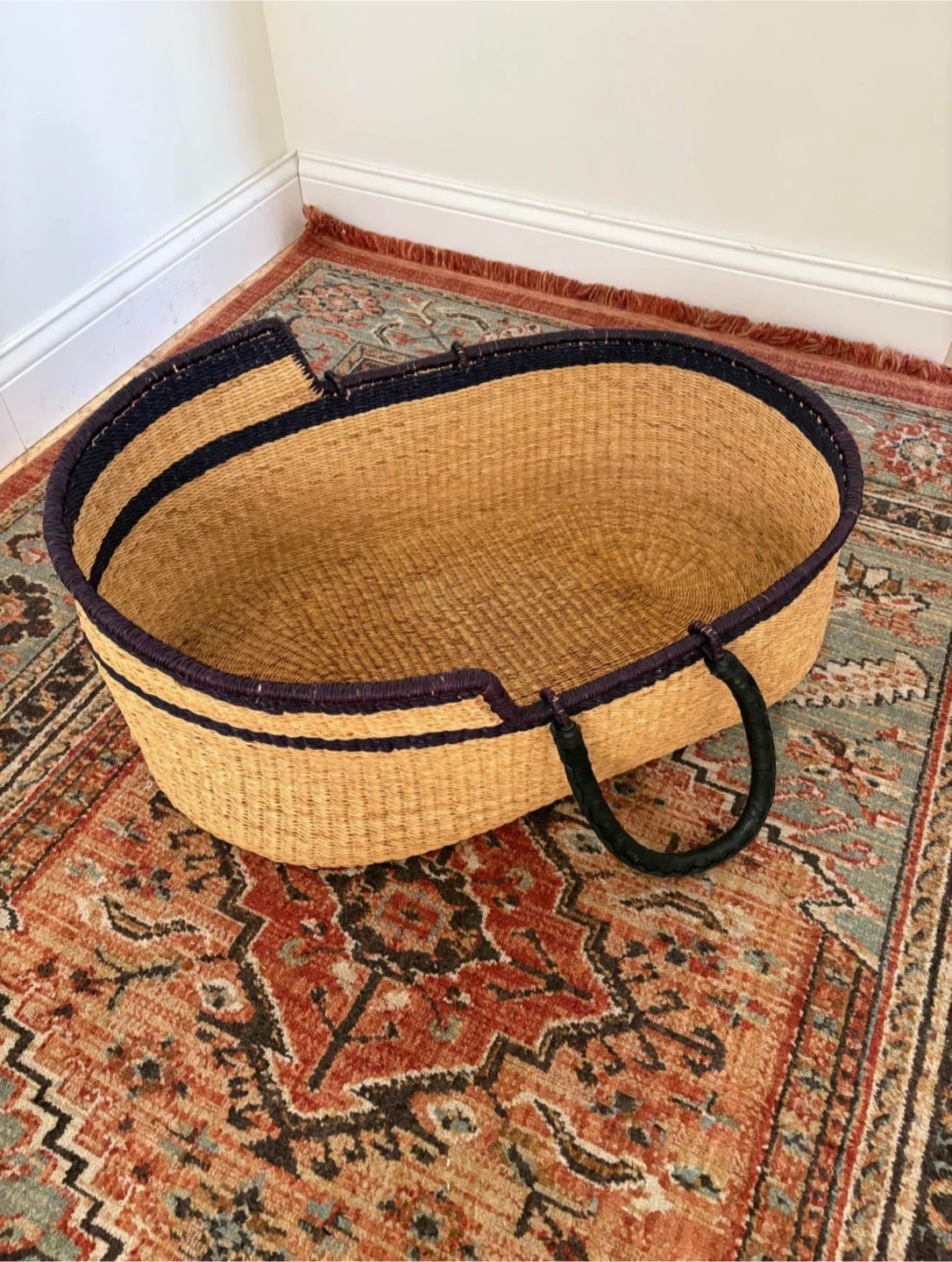 Selling a woven Moses basket bassinet. It's in great condition and perfect for a newborn! The basket is sturdy and has handles for easy carrying