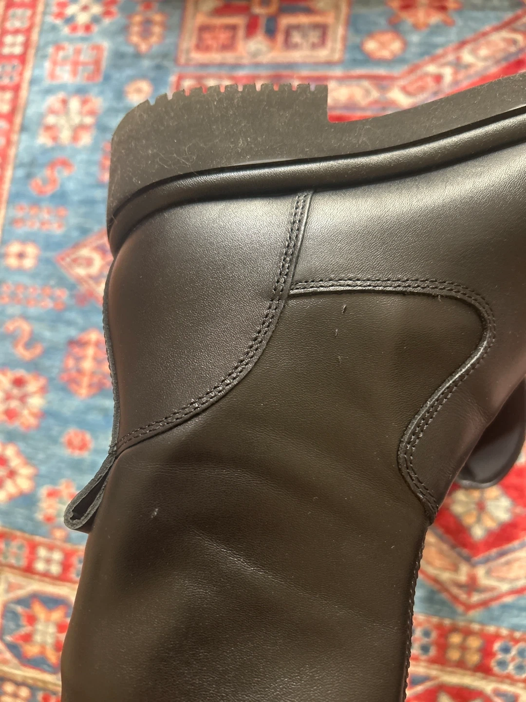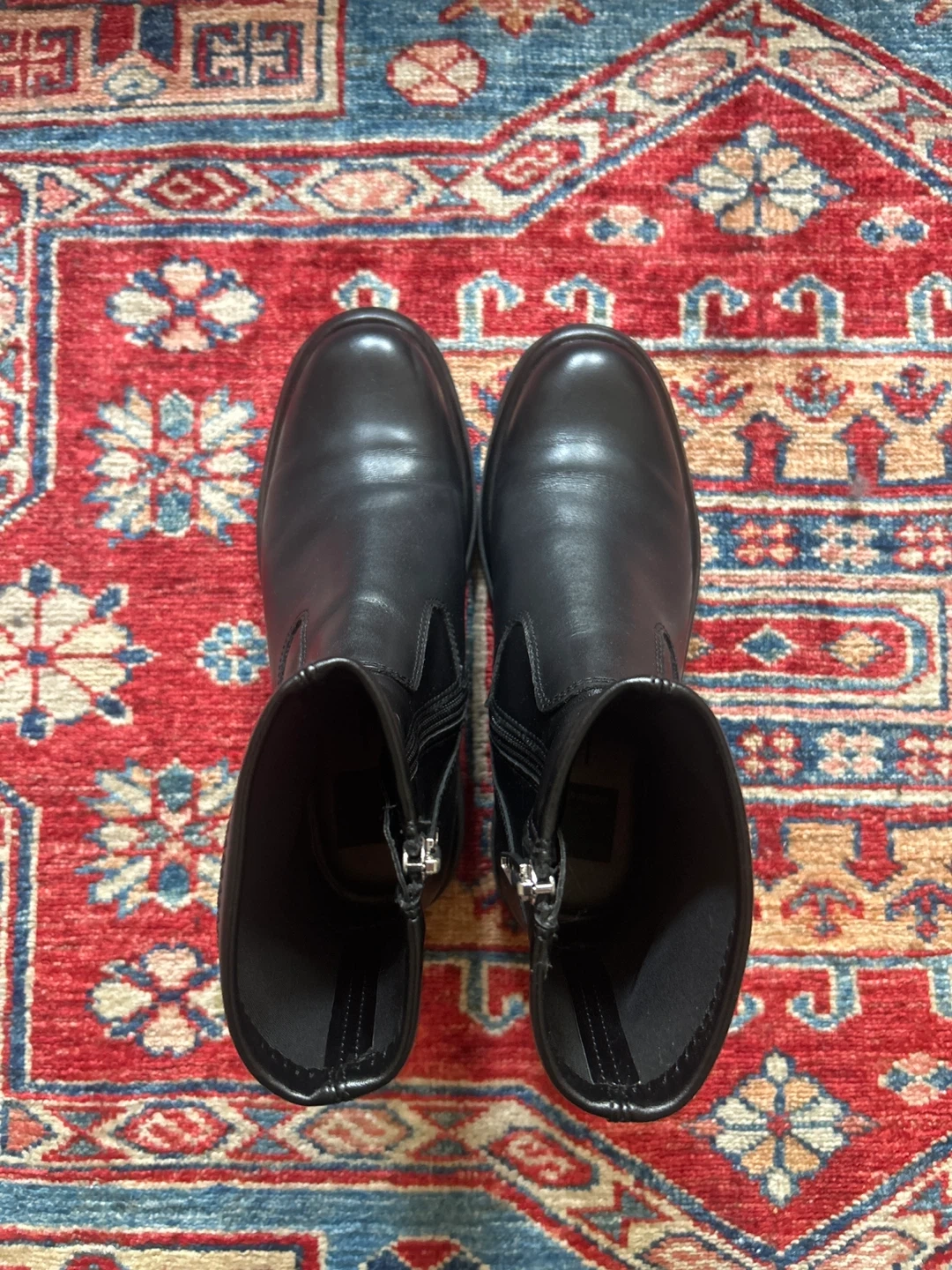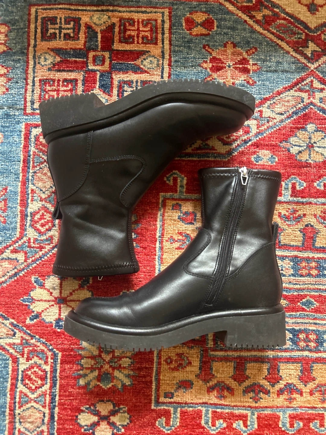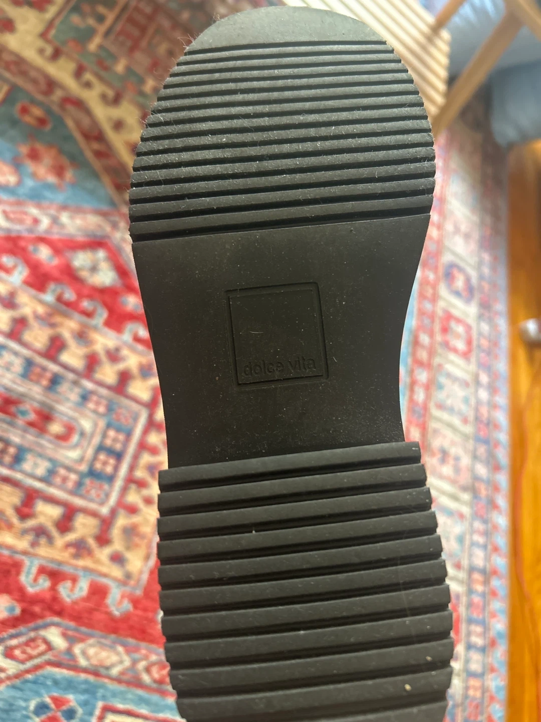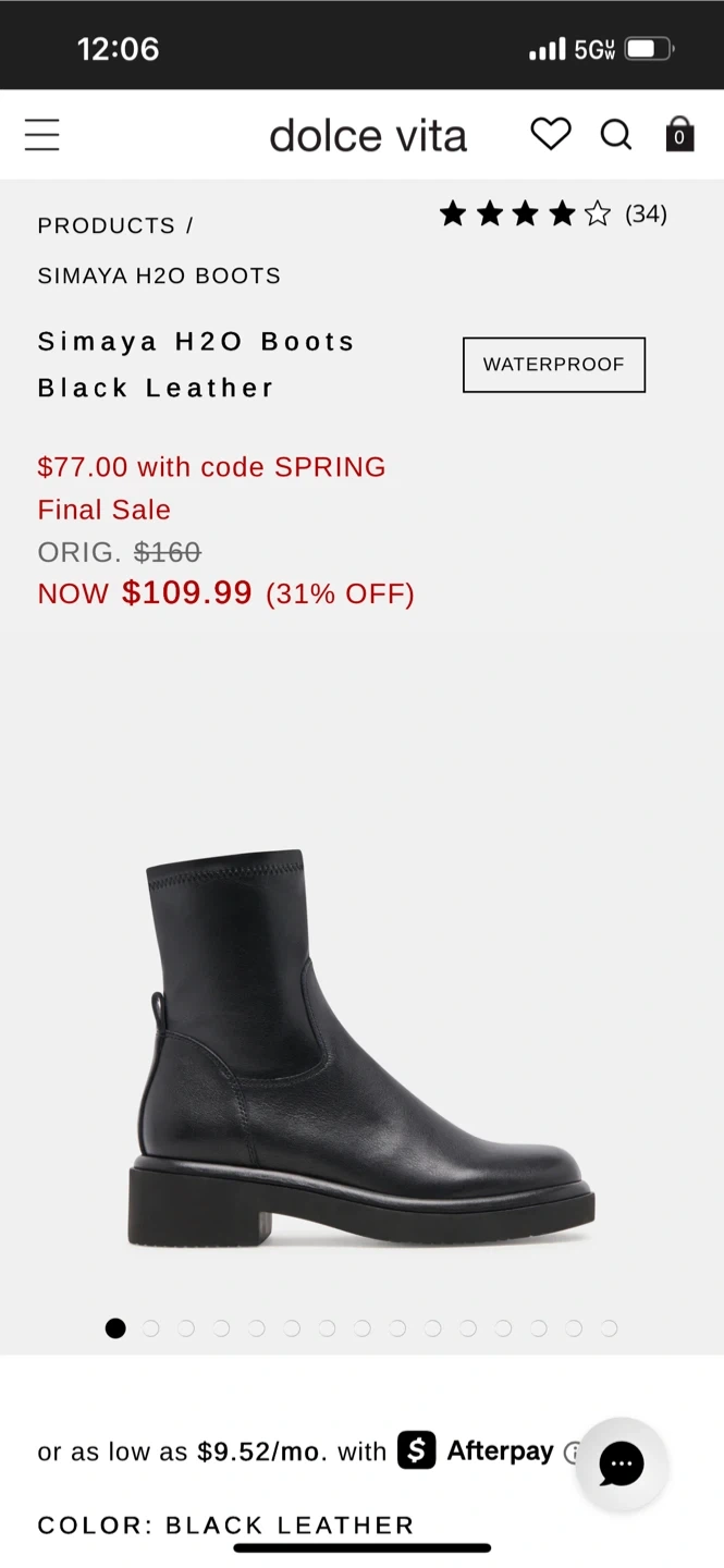 These black leather ankle boots from Dolce Vita feature a side zipper for easy on and off. Foot part is real leather, ankle part is synthetic. Slight wear pictured- only worn a couple times. They have a durable sole and a comfortable fit. A versatile boot for everyday wear! Waterproof, women’s size 7M- see original item listing in last photo.