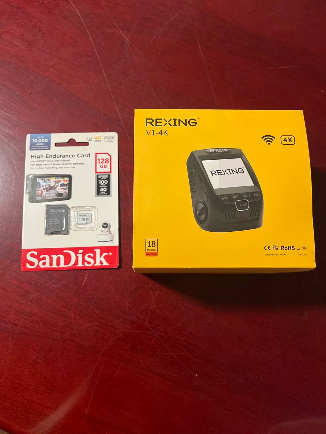 Selling a Rexing V1-4K dash cam with a SanDisk 128GB High Endurance card.