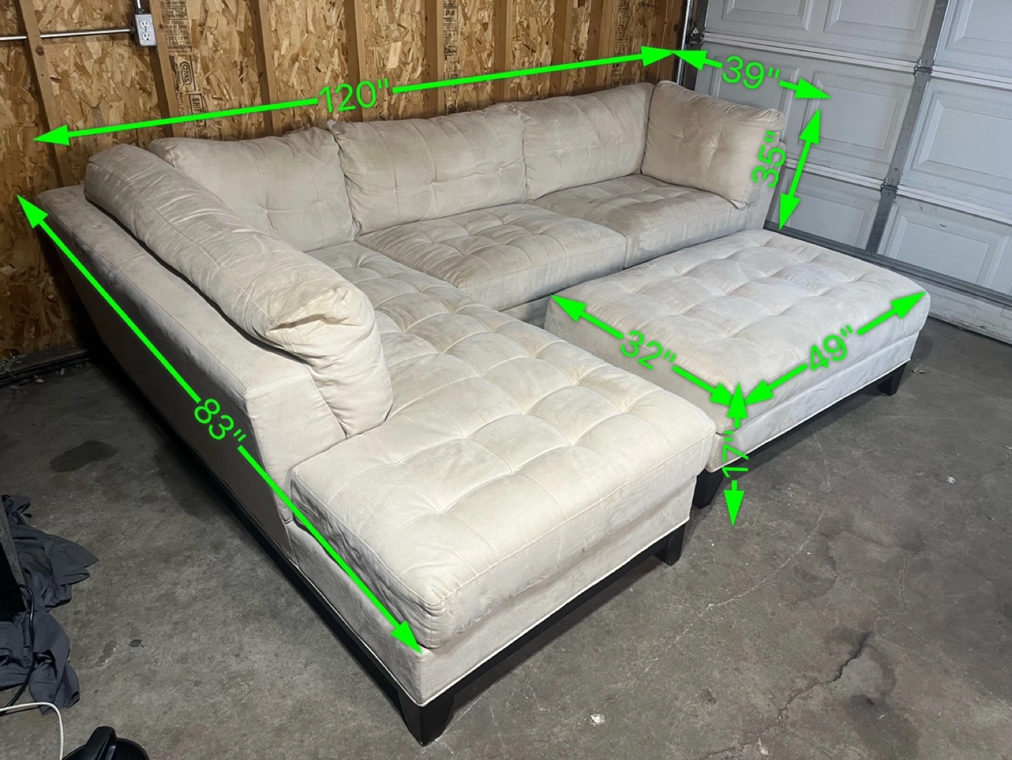 FREE DELIVERY | Beige Sectional Sofa with Ottoman