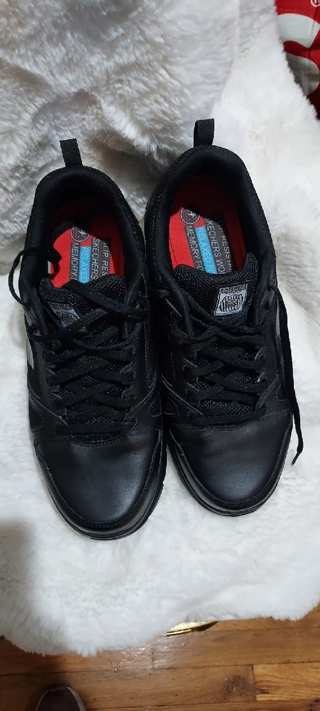 10Selling a pair of Skechers Relaxed Fit work shoes in black! They feature memory foam insoles for extra comfort during long hours on your feet. The soles are slip-resistant, providing added safety. They're in great condition and ready for a new home!