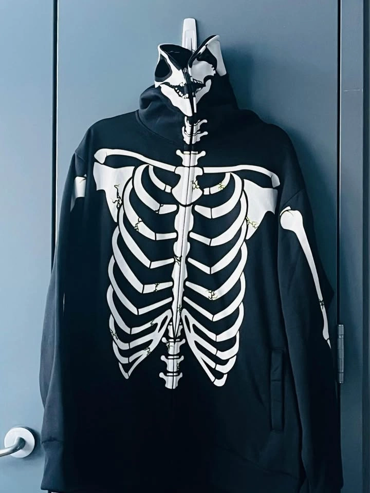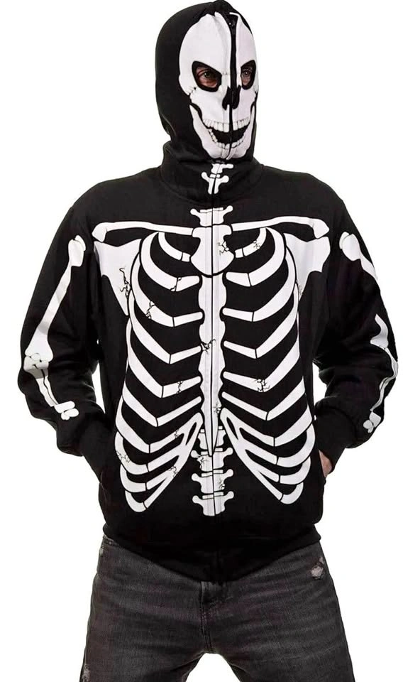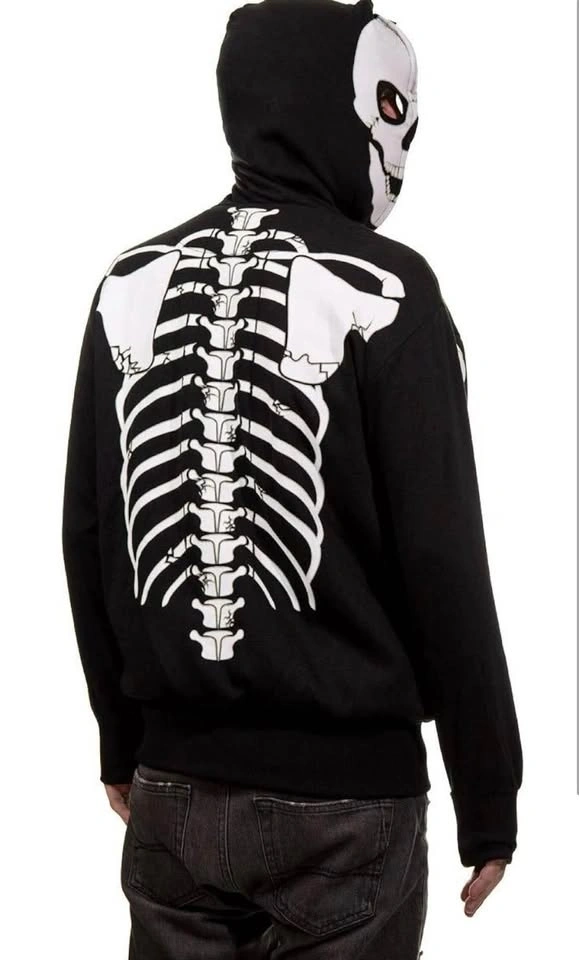 A skeleton hoodie with a full face hood cover. Size XXL. Roomy and warm for the cold weather. Only wore once. It’s in like new condition.