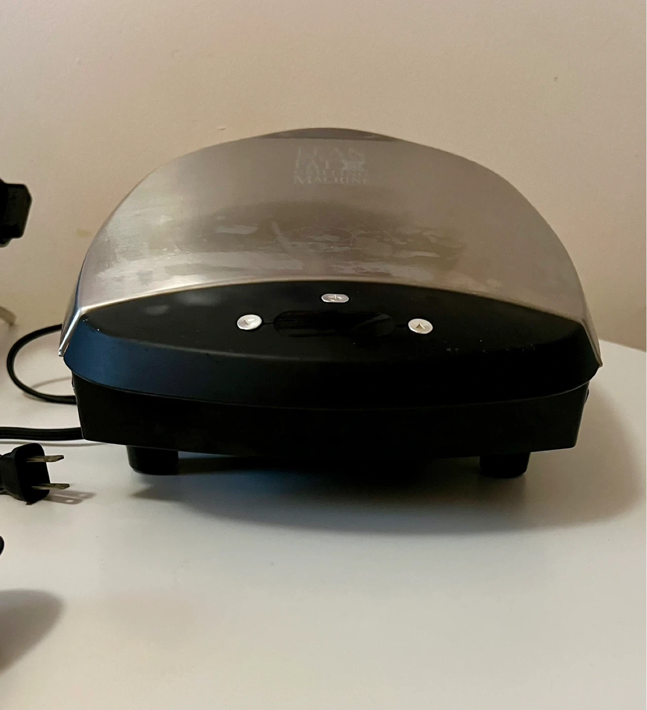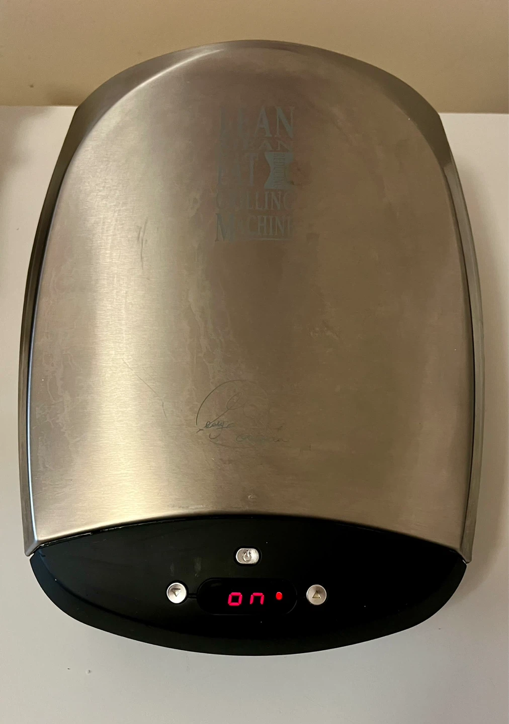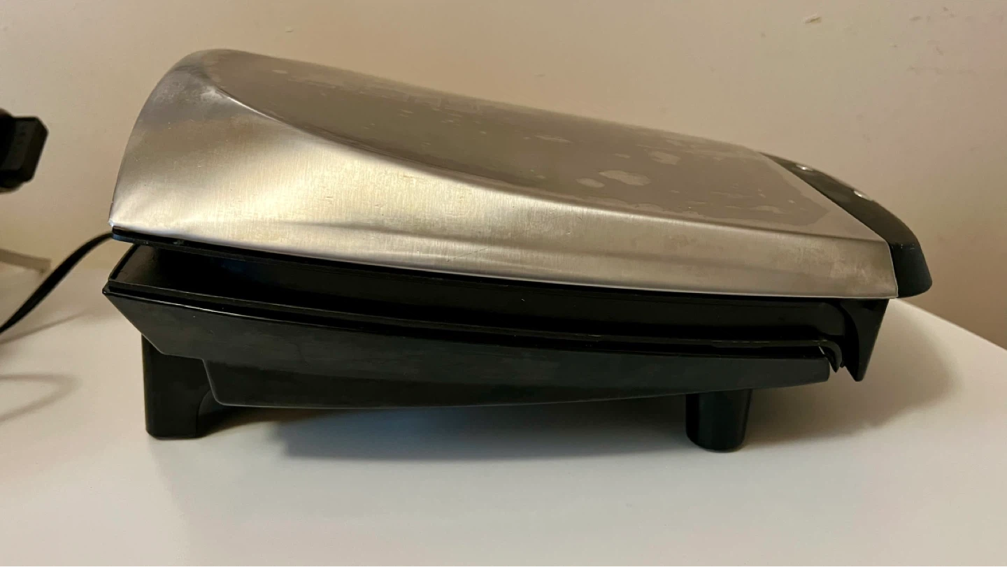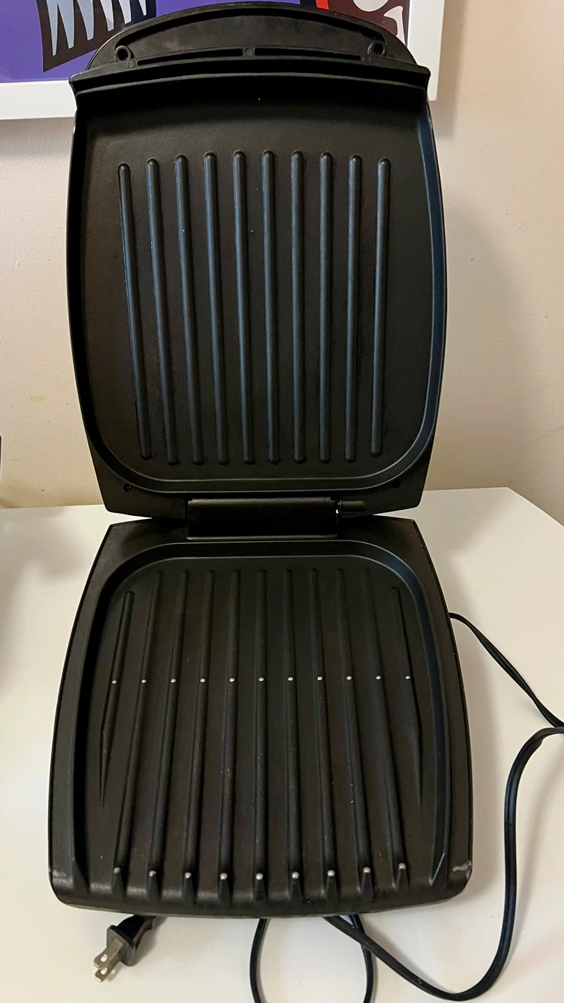 George Foreman's Lean Mean Fat Reducing Grilling Machine lets you enjoy the taste of grilled food without leaving the kitchen. Features 20-minute timer with a preheat countdown - display says “on” when ready.