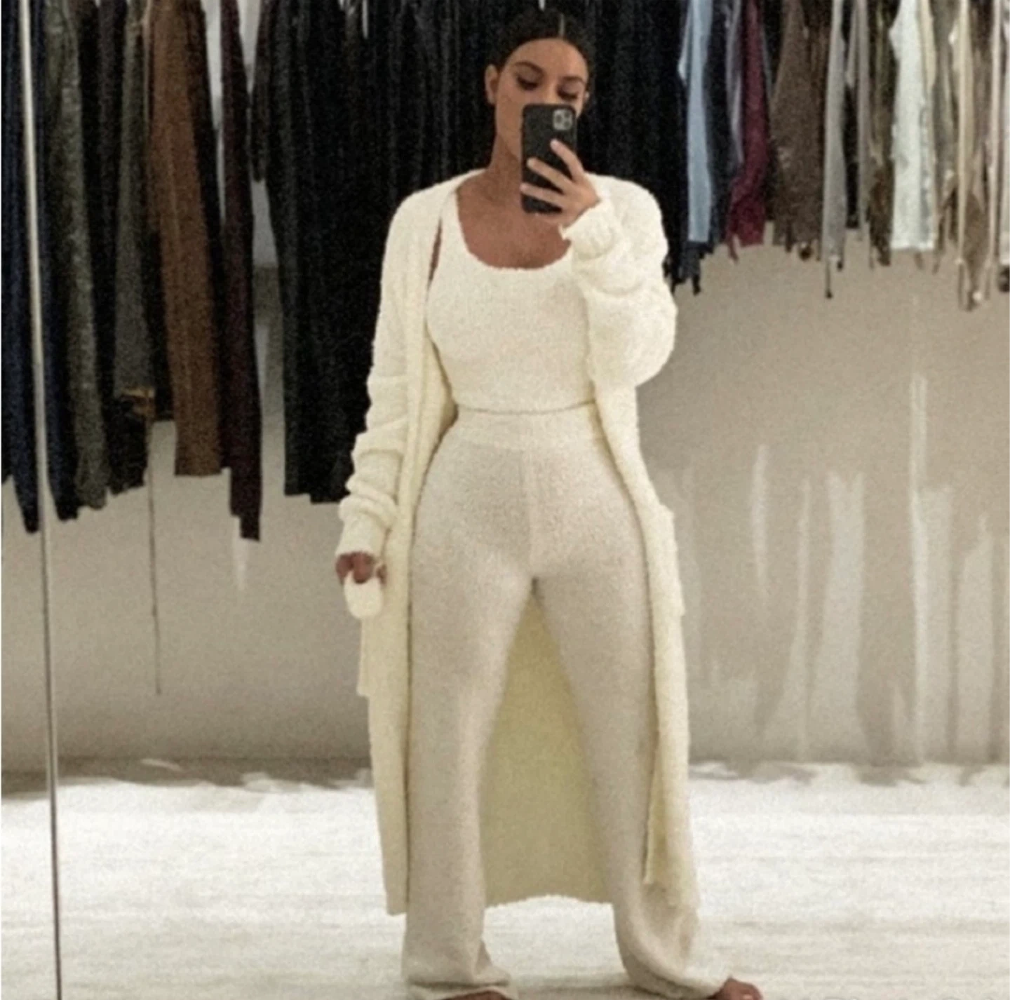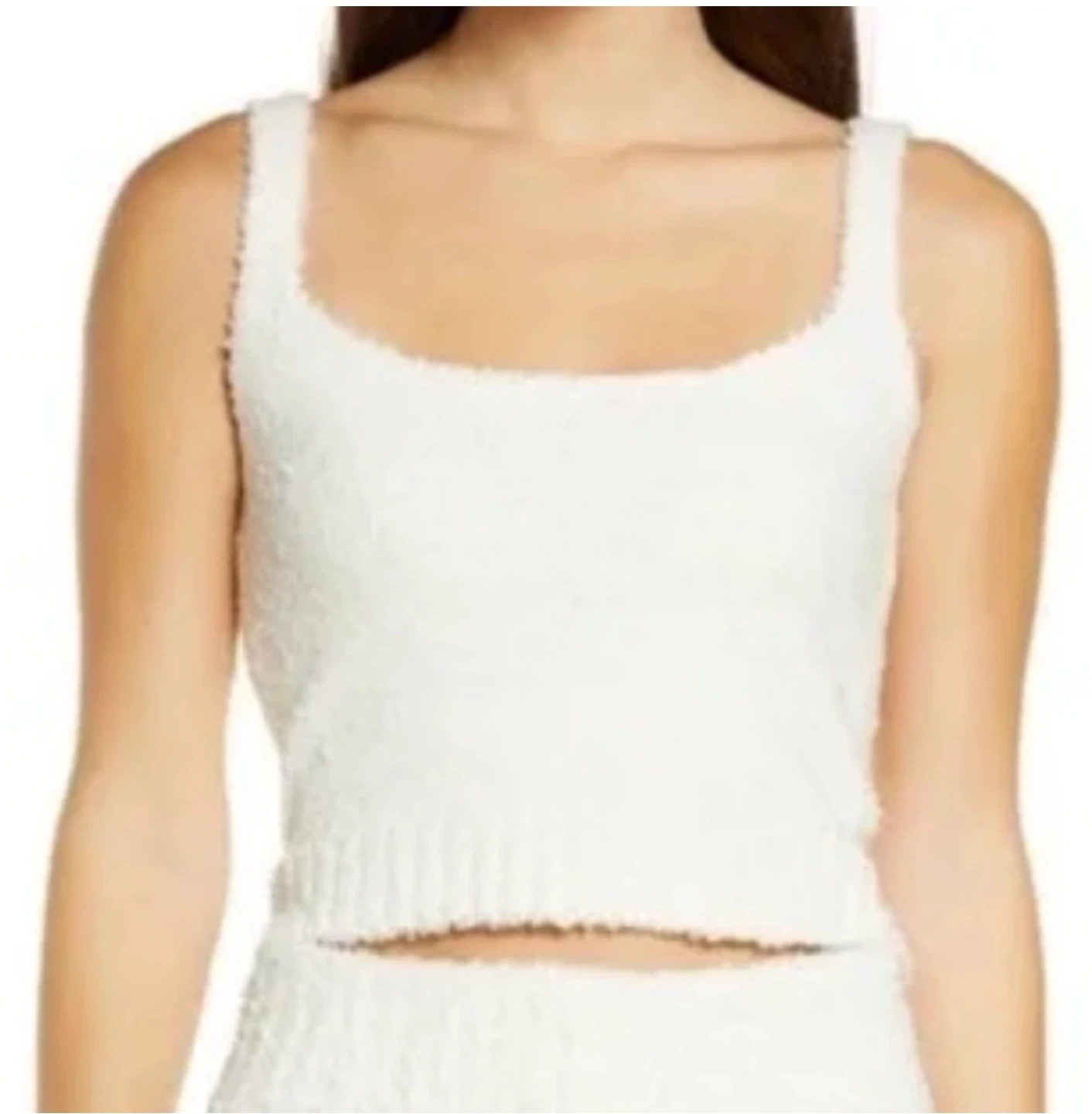 Selling a SKIMS Cozy Knit Tank Top in cream color. This tank is super soft and comfy, perfect for lounging or layering. It's in great condition and ready for a new home!