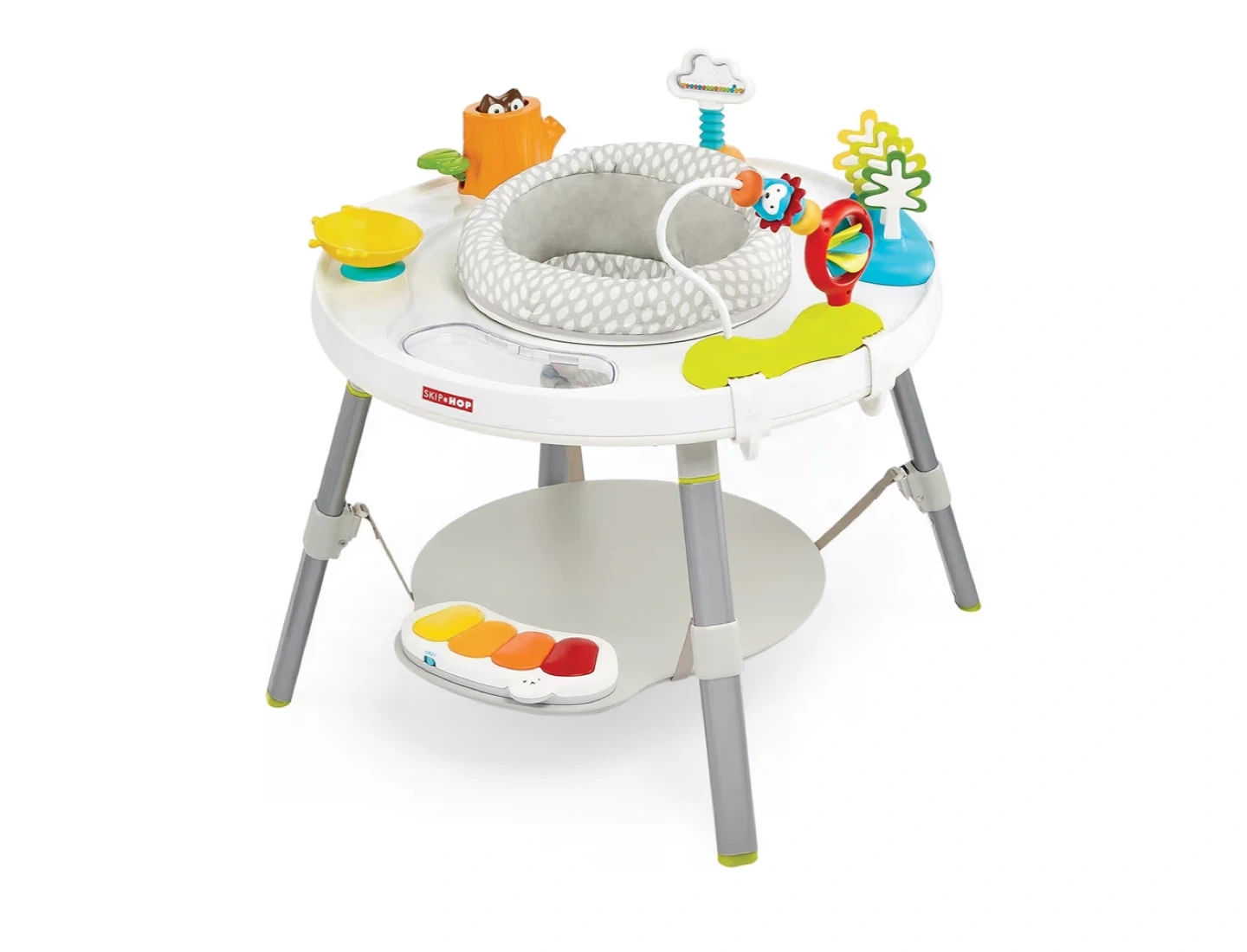 65Selling a gently used Skip Hop Explore & More Jumpscape Activity Center! It's in great condition and ready for a new little one to enjoy. This activity center is designed to grow with your baby, featuring a 360-degree rotating seat and lots of engaging toys to stimulate their senses and development. It has a variety of activities, including lights, sounds, and tactile experiences, to keep your baby entertained and learning