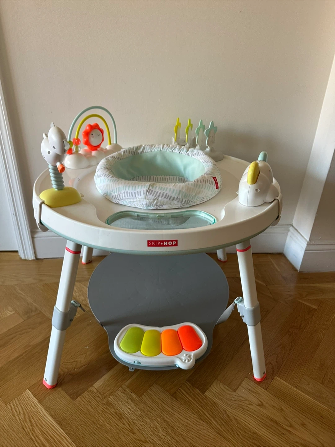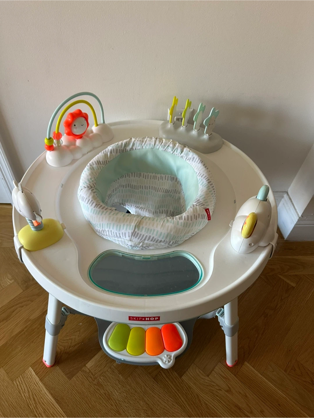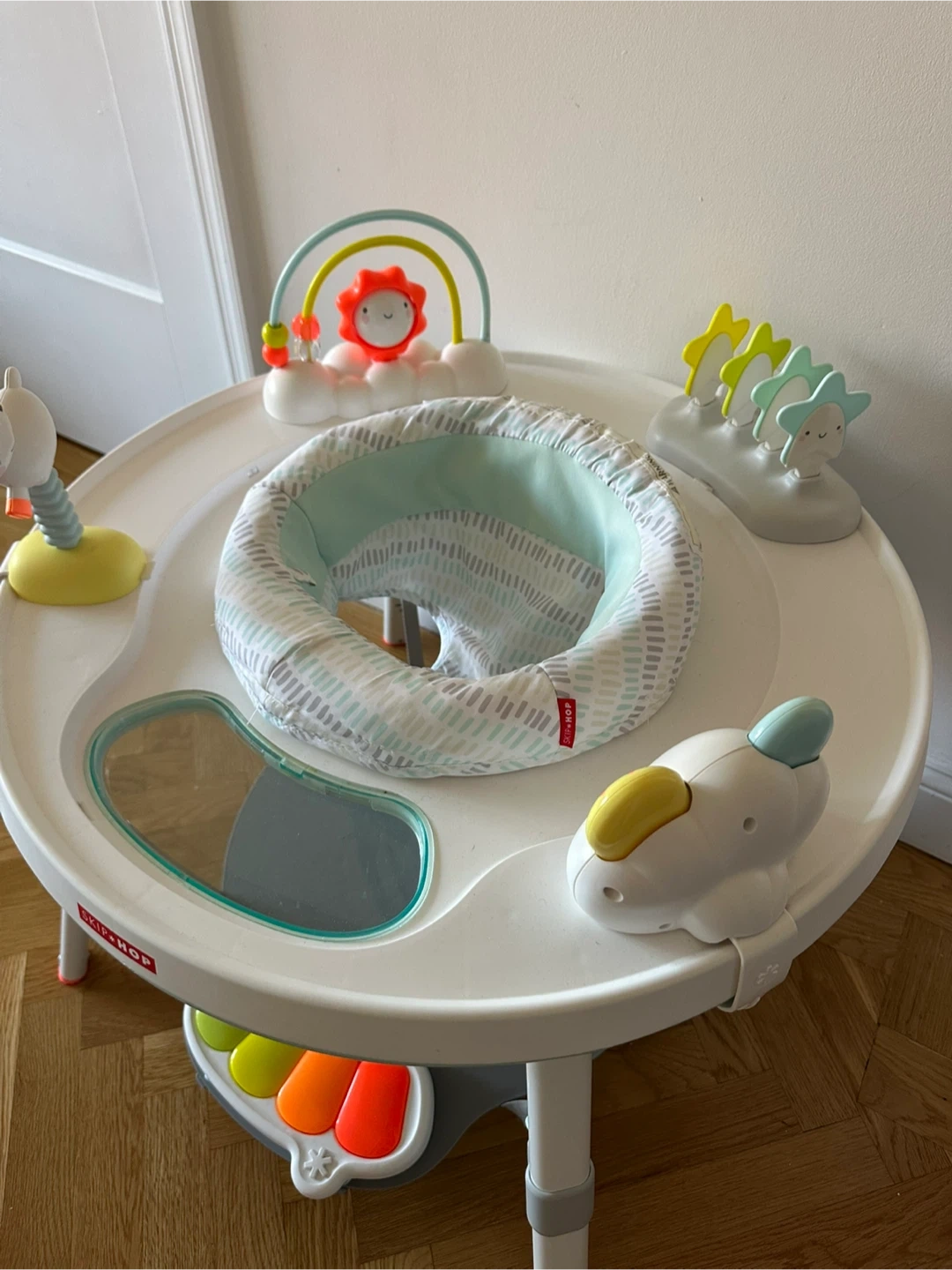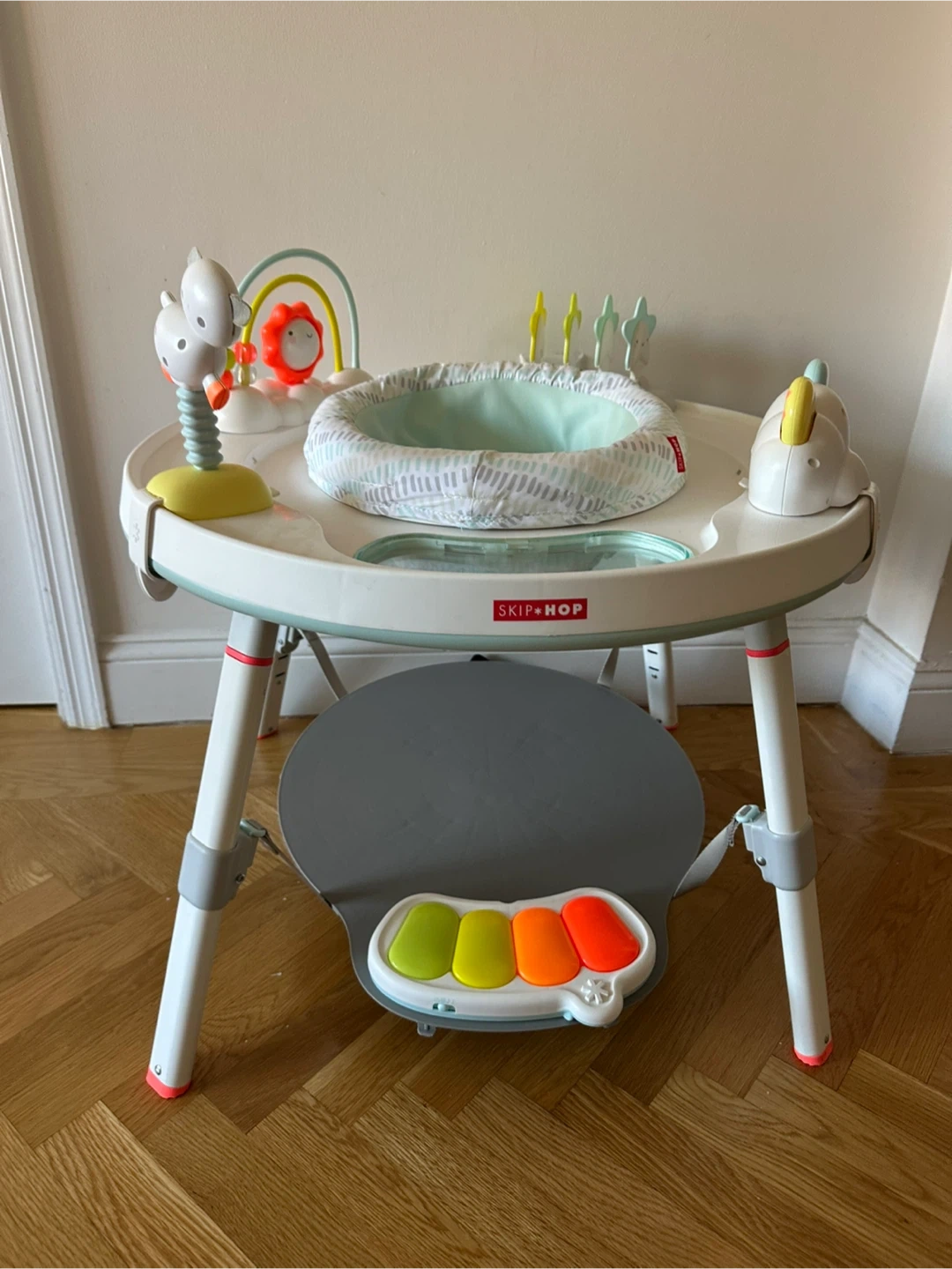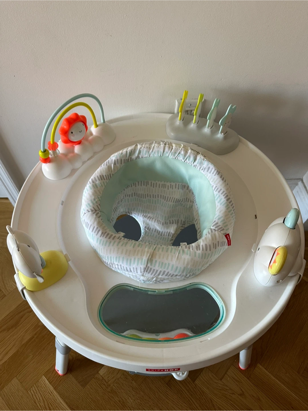 Selling a Skip Hop Explore & More Jumpscape Activity Center! It's in great condition and ready for a new home. Features include: - 360-degree rotating seat - Light-up piano with colorful keys - Various interactive toys to keep your little one entertained