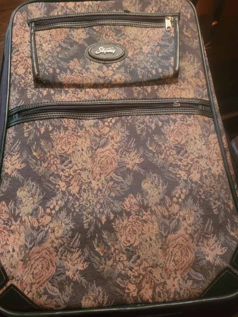 Selling a Skyway carry-on suitcase with a unique floral pattern. It has a few zippered compartments to keep your belongings organized. Perfect for short trips or as an additional bag for longer journeys